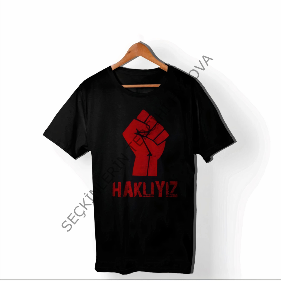 1 Mayıs Emekçilerimiz İçin Özel Tasarım HAKLIYIZ Baskılı T-shirt - Siyah