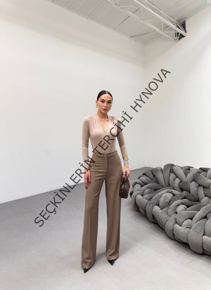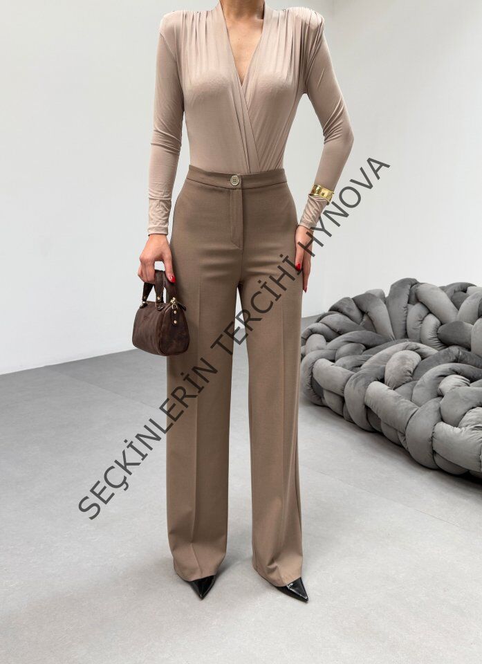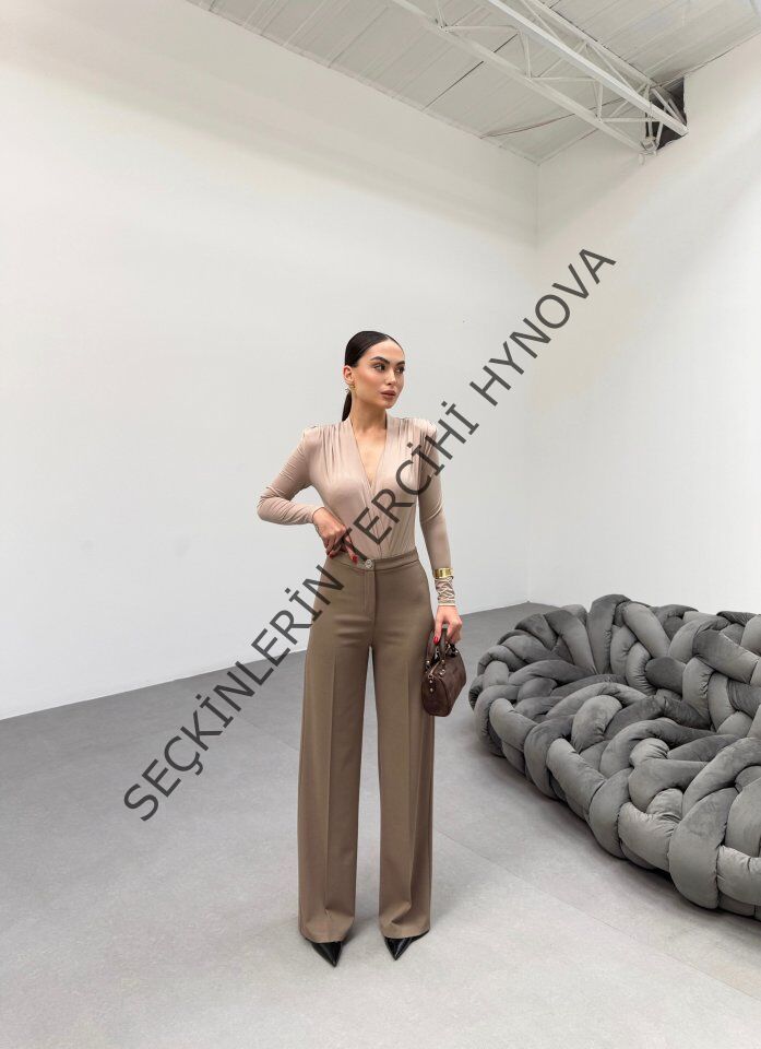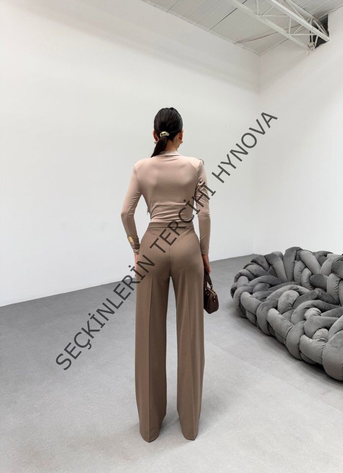 230 Gr Poly Viscose Lycra Metal Düğme Palazzo Pantolon