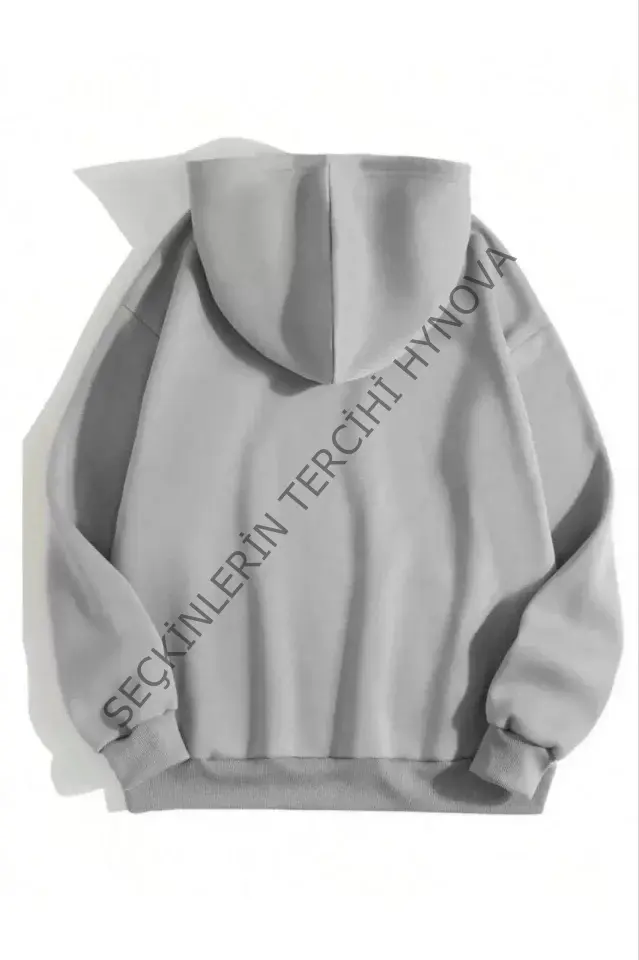 3 İplik Pamuklu Unisex Kapşonlu Sweetshirt - Gri