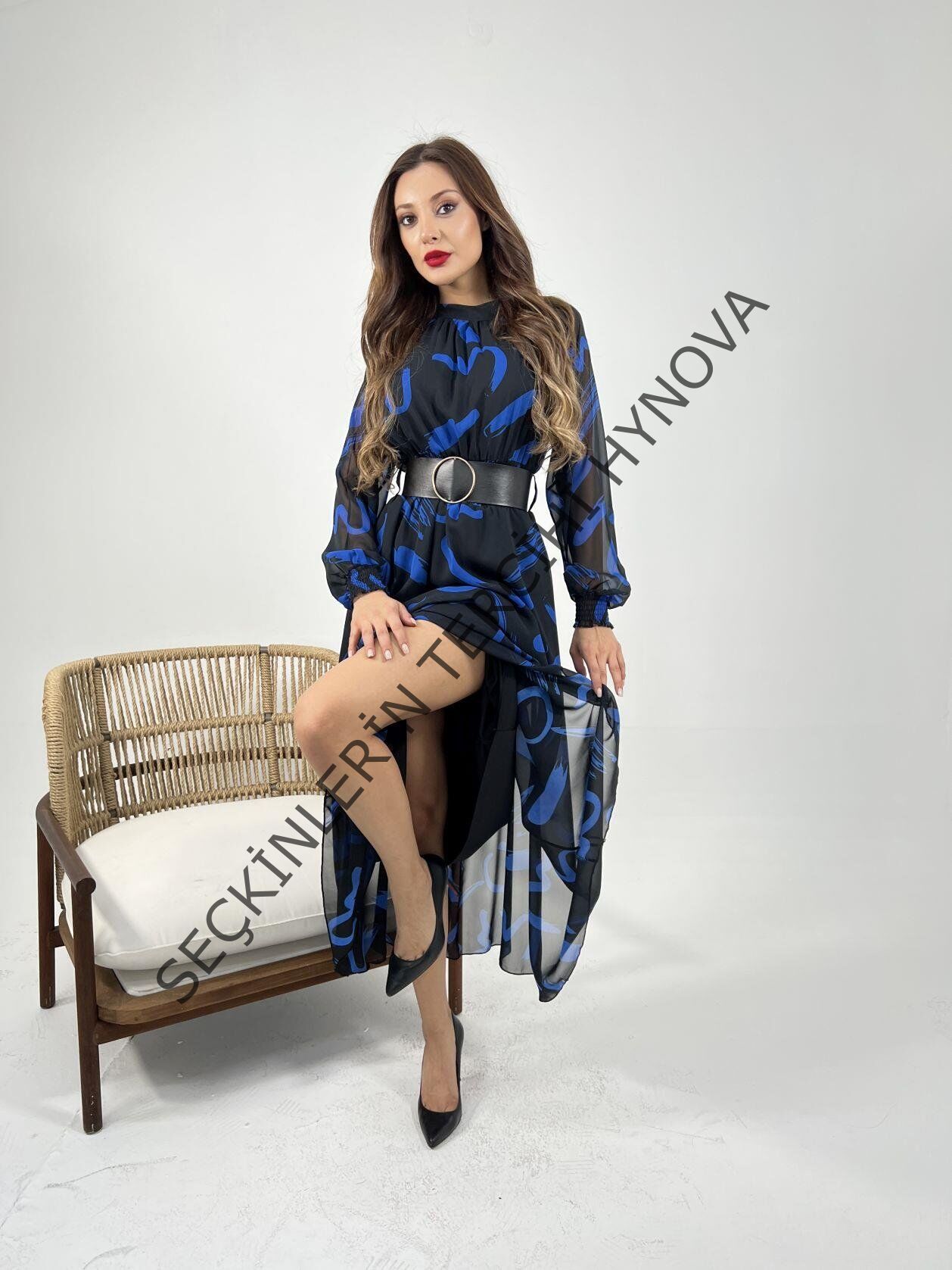 Modelin Ölçüleri: Boy:165, Kg:55, Göğüs:90, Bel:72, Kalça: 100