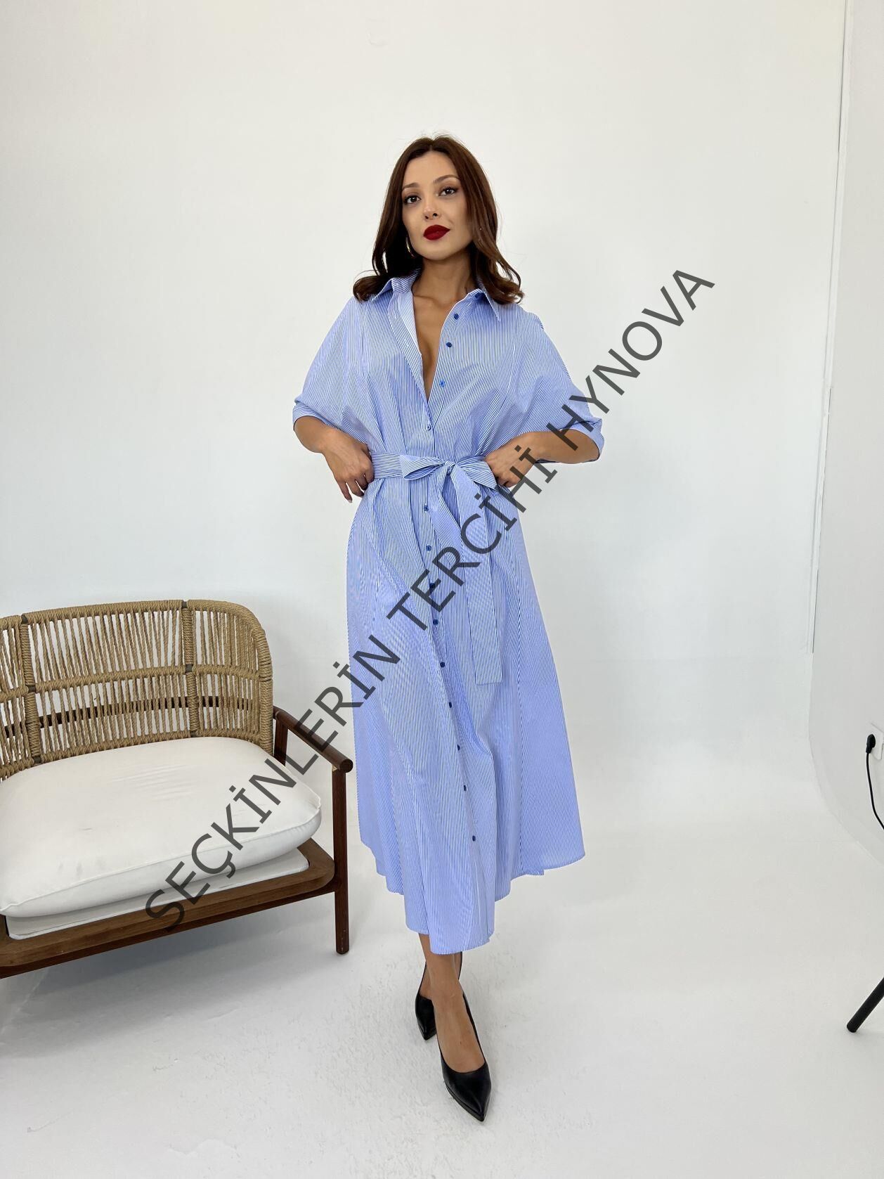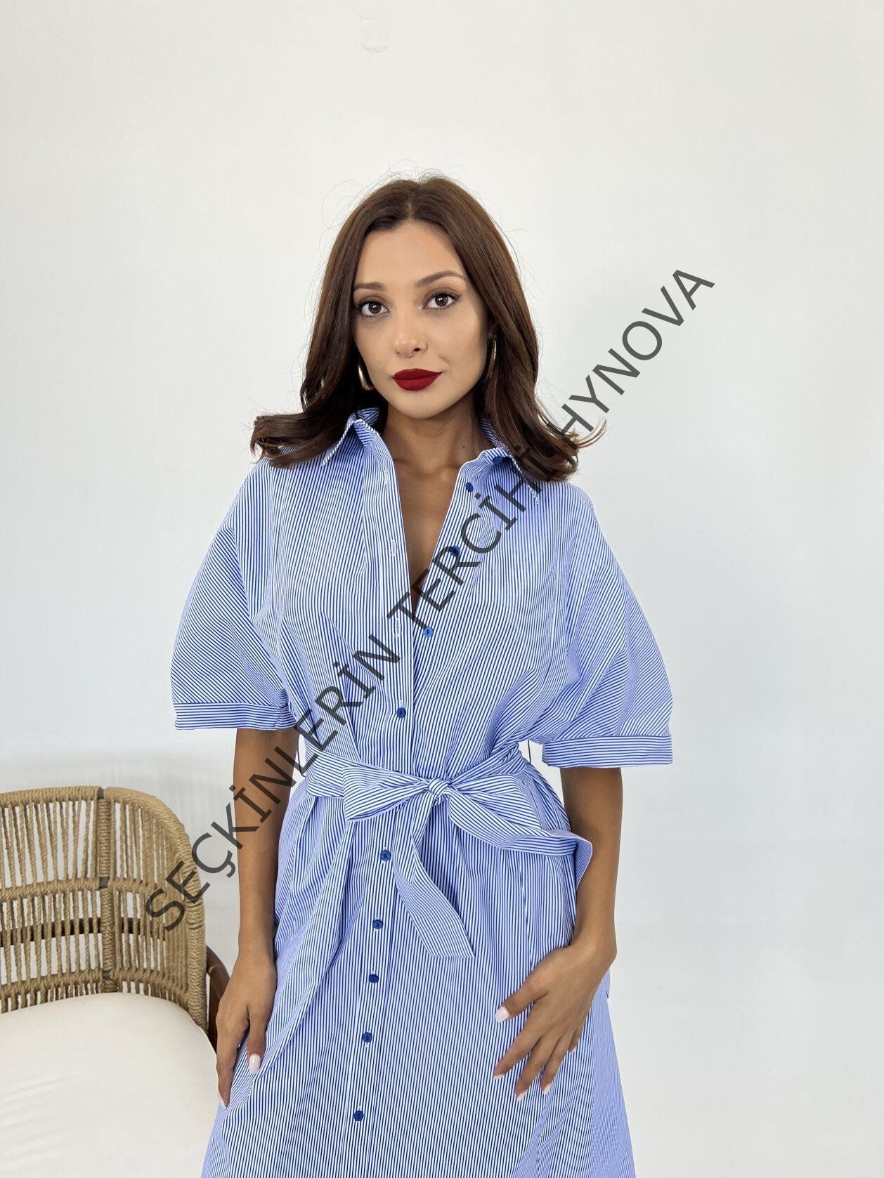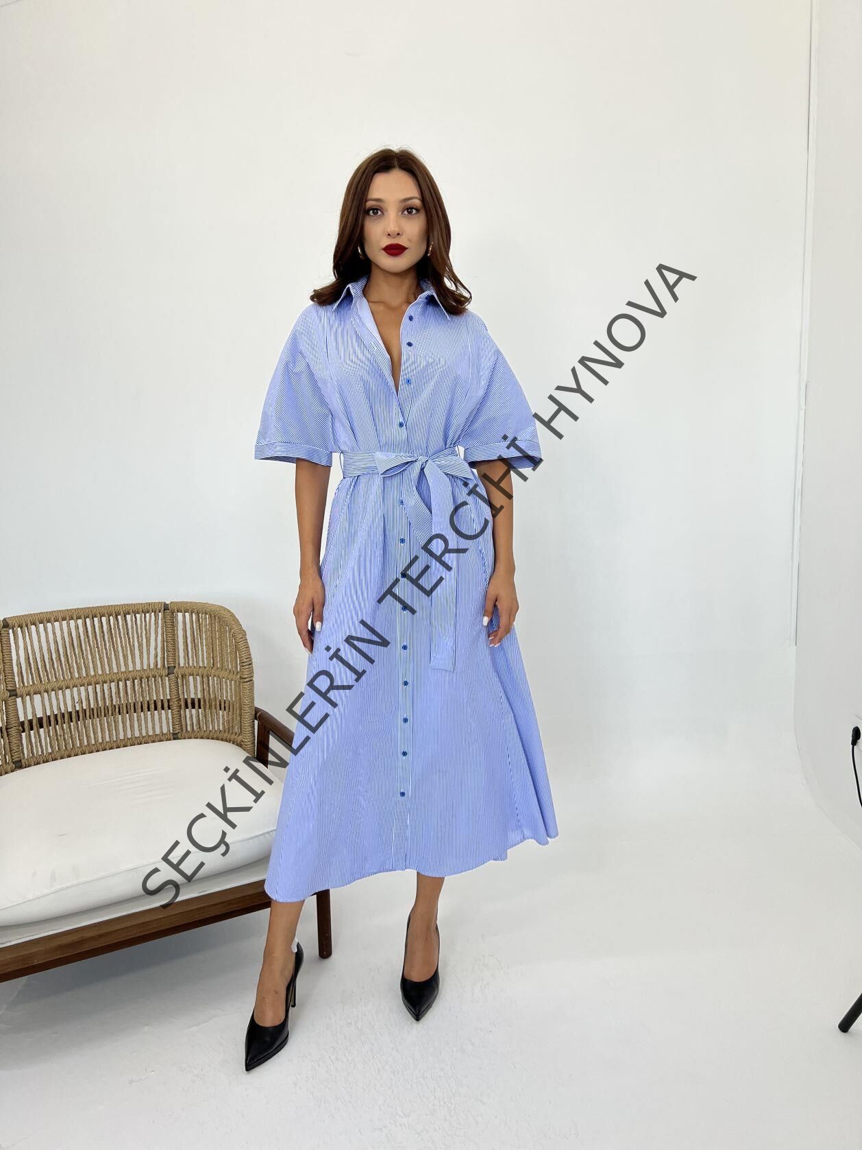5318 ELBİSE-MAVİ BEYAZ ÇİZGİLİ