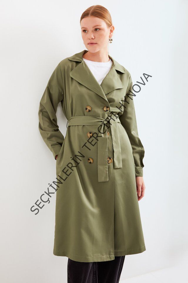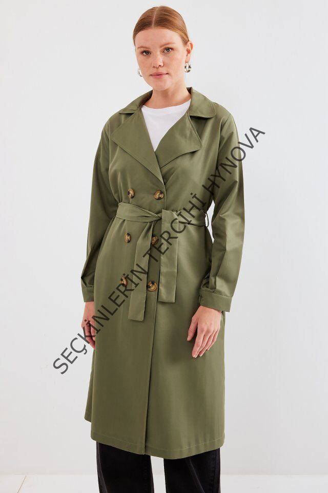 5853 Kruvaze Yaka Trençkot - Haki