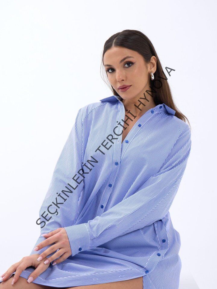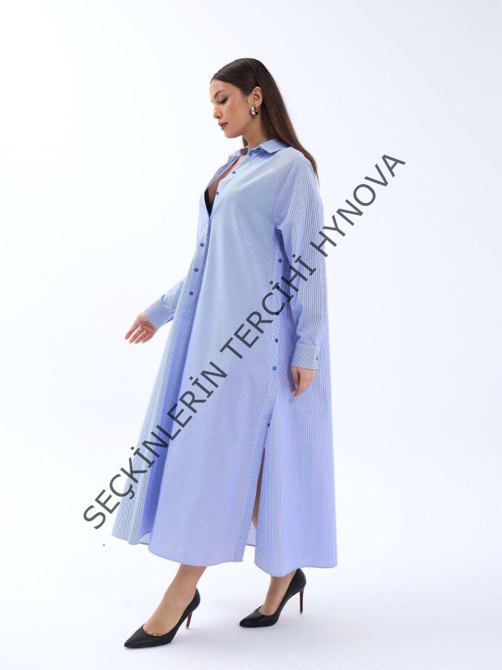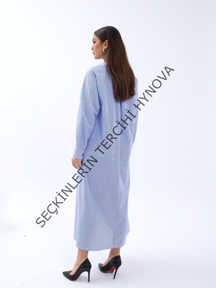 5857 ELBİSE-MAVİ BEYAZ ÇİZGİLİ