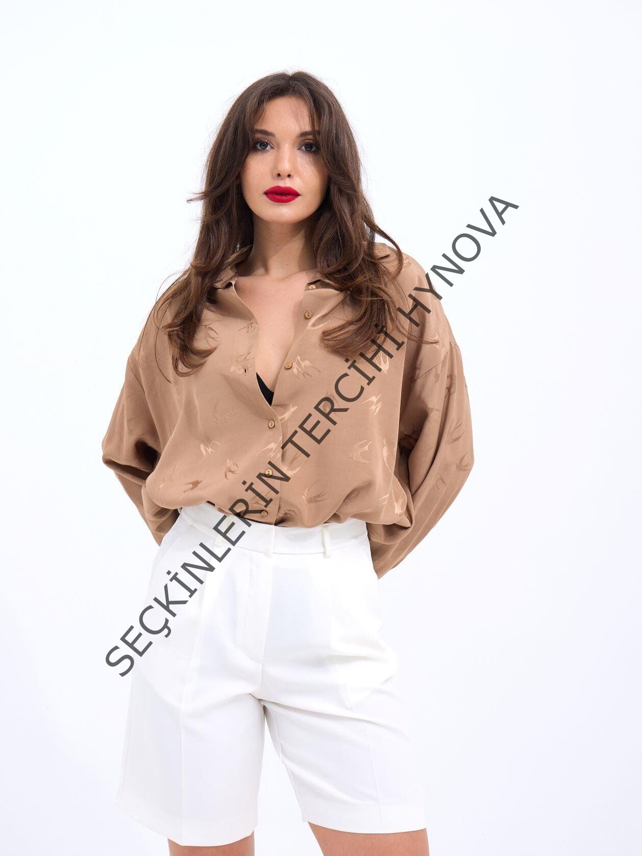 Modelin Ölçüleri: Boy:165, Kg:55, Göğüs:90, Bel:72, Kalça: 100