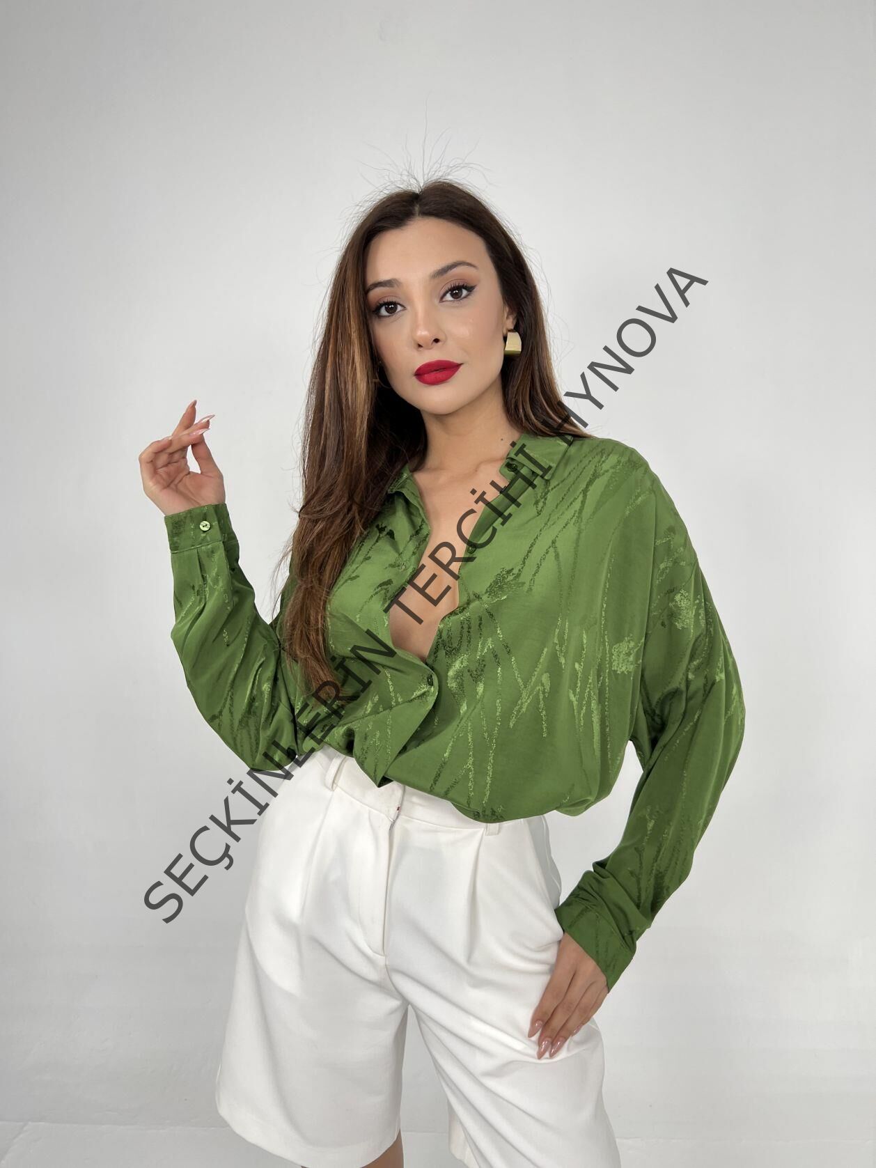 Modelin Ölçüleri: Boy:165, Kg:55, Göğüs:90, Bel:72, Kalça: 100
