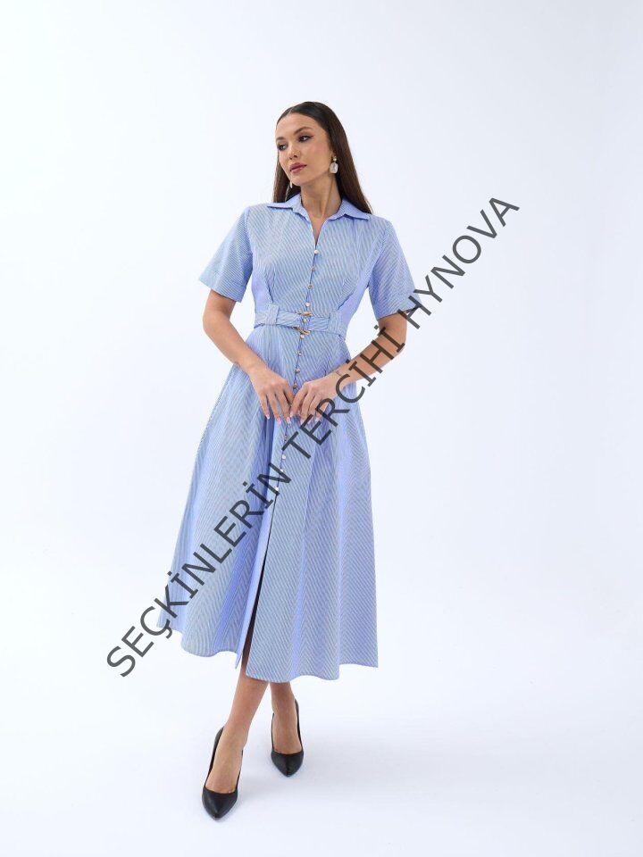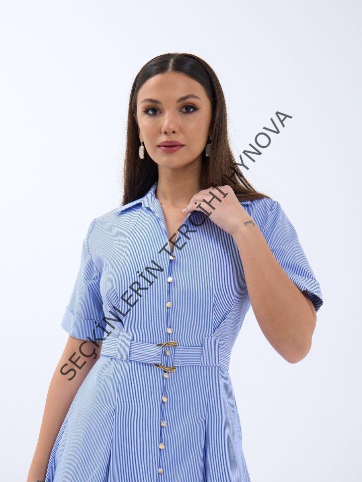 6948 ELBİSE-MAVİ BEYAZ ÇİZGİLİ