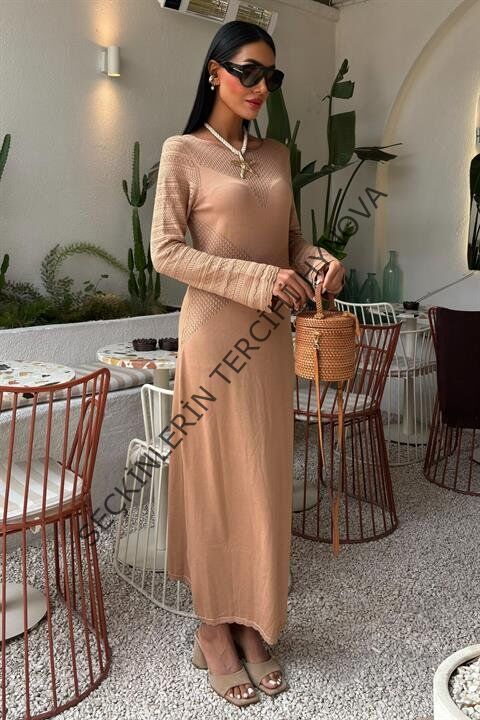 Ajur Detaylı Bisiklet Yaka Triko Elbise 2861