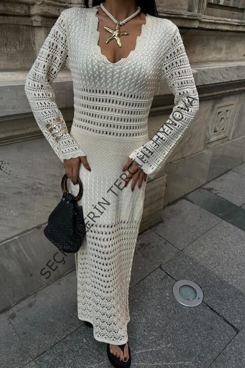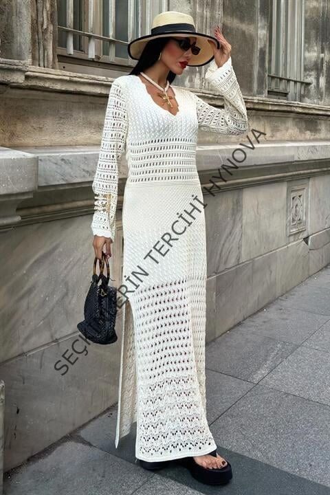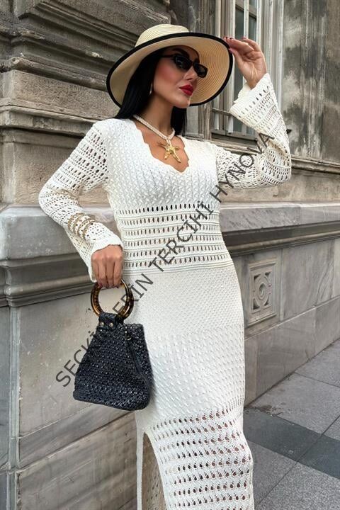 Ajur Detaylı İspanyol Kol Elbise 2840