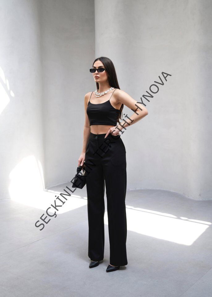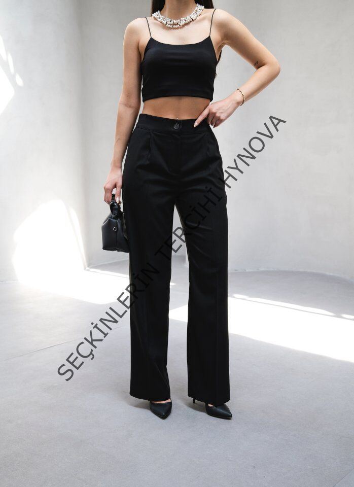 Arkasi Lasti̇kli̇ Pi̇leli̇ Dökümlü Wide Leg Pantolon