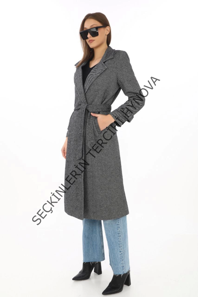 Astarlı Balık Sırtı Kaşmir Kaşe Kaban - Füme