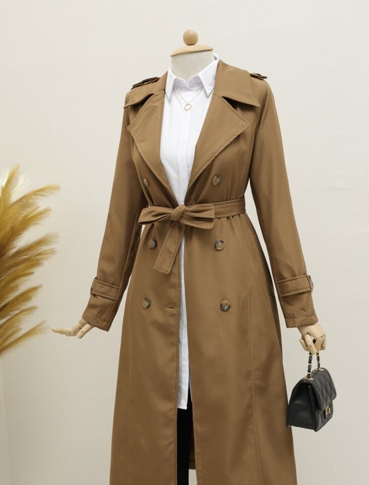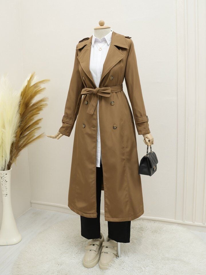 Astarlı Kemerli Trenckot -Taba