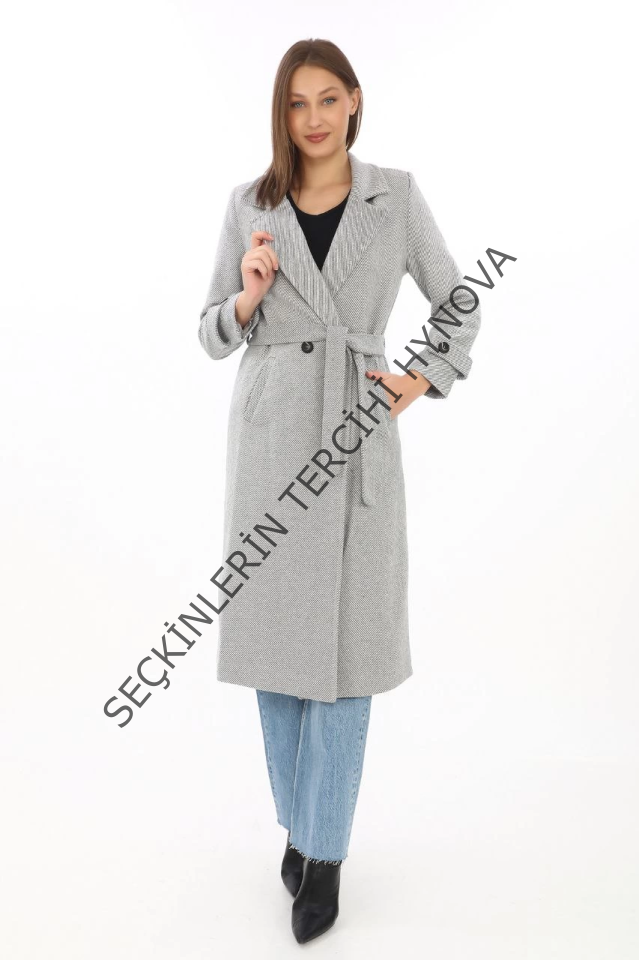 Balık Sırtı Kaşe Kaban – Uzun Boy Kruvaze Yaka Kuşaklı Astarlı Kışlık Tesettür Kaban, Yünlü Dokuma Kaşmir Kumaş, Cepli Rahat Oversize Kalıp Şık Modern Kaban Mont Modeli (Günlük Ve Özel Gün Kombinlerine Uygun) - Gri