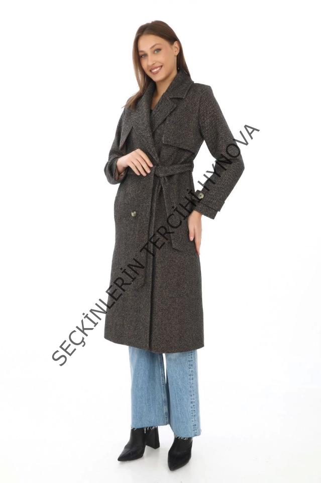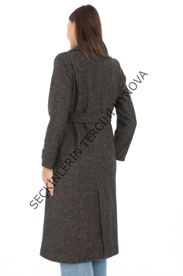 Balık Sırtı Kaşmir Uzun Kaşe Kaban - Kahverengi
