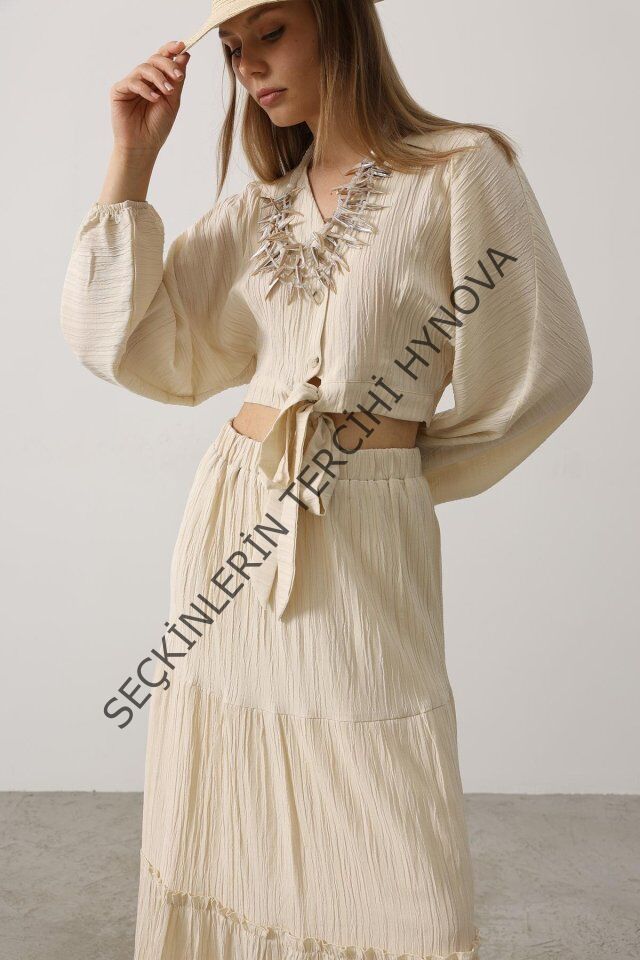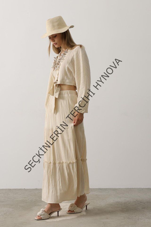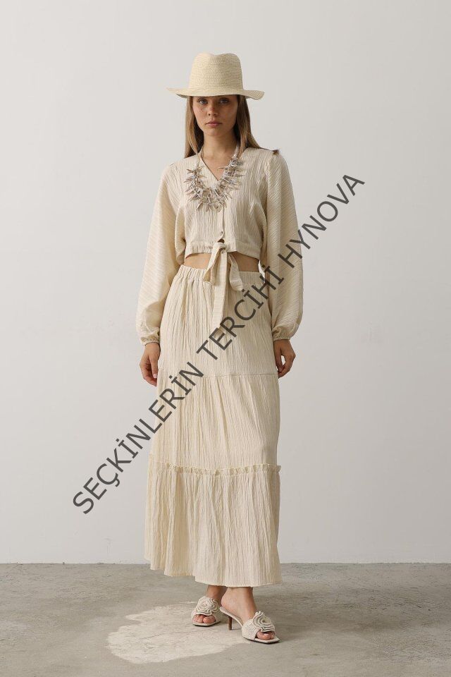 Modelin Ölçüleri: Boy:165, Kg:55, Göğüs:90, Bel:72, Kalça: 100