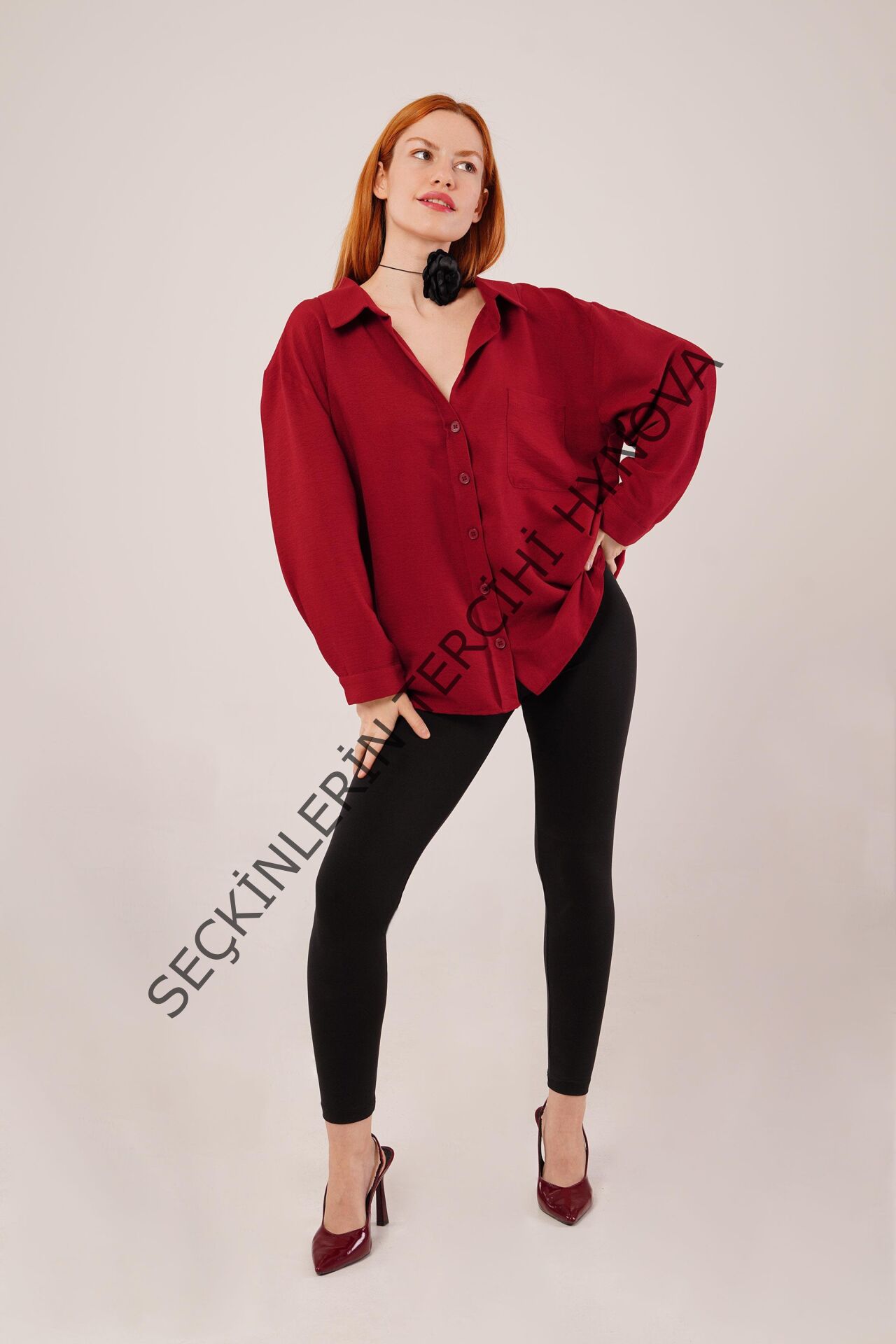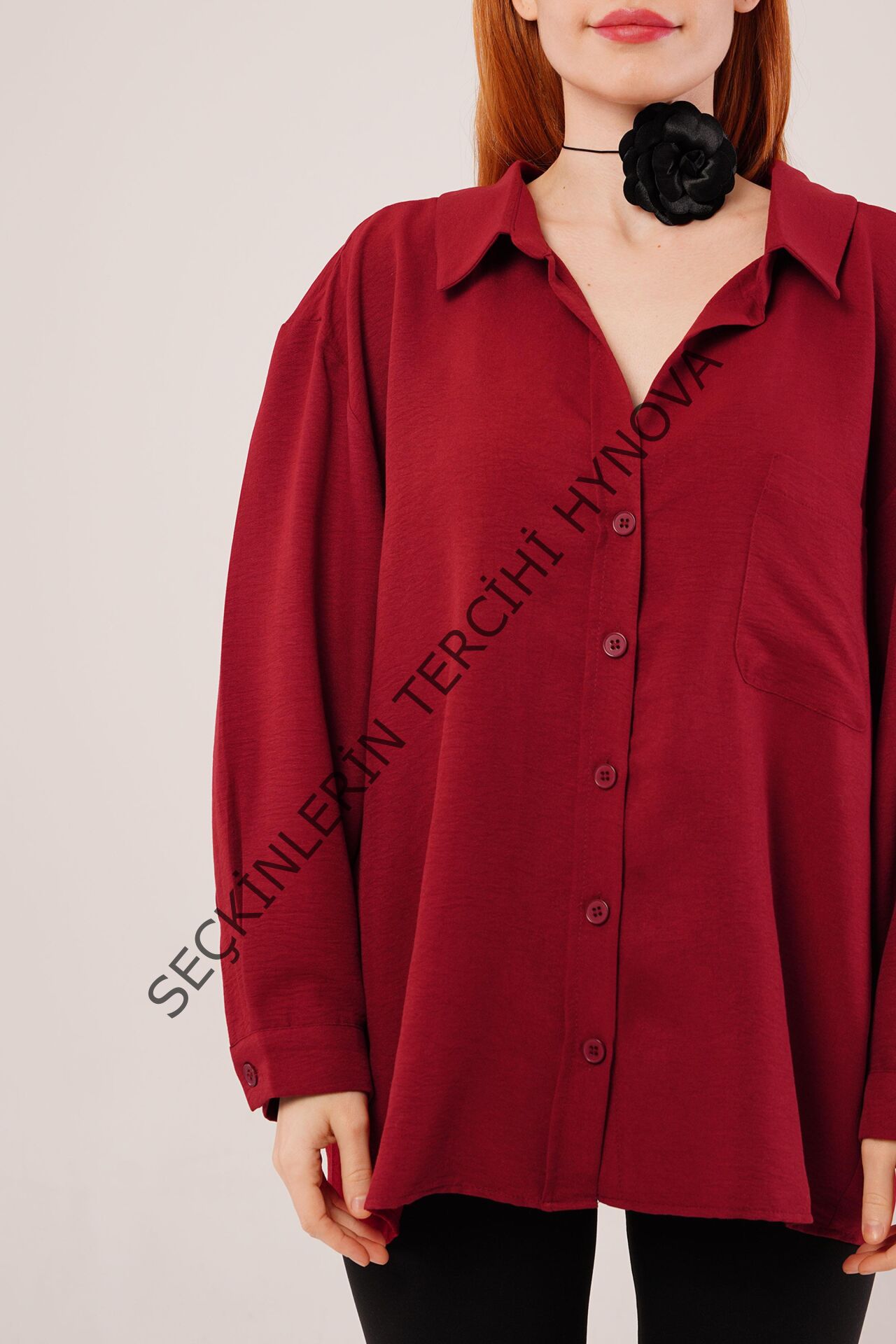 Basic Oversize Bordo Gömlek