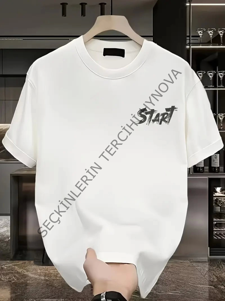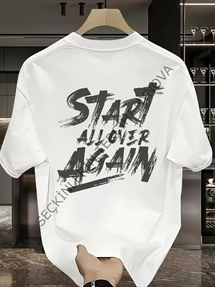 Baskılı Oversize Bisiklet Yaka T-shirt - Beyaz