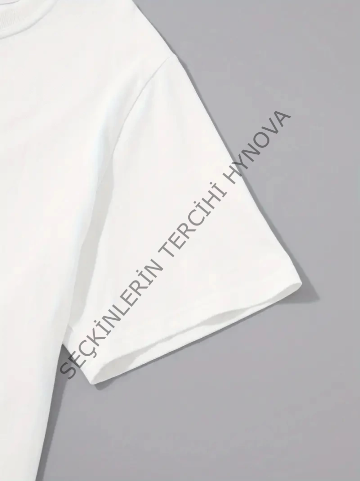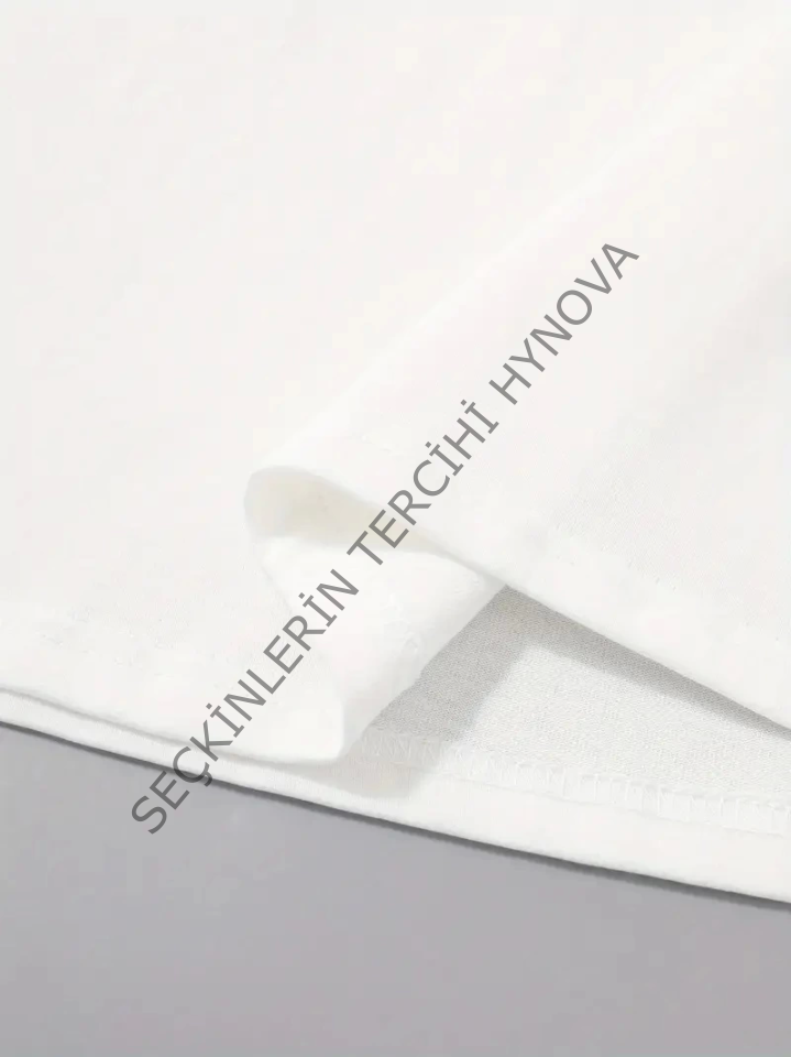 Baskılı Oversize Bisiklet Yaka T-shirt - Beyaz