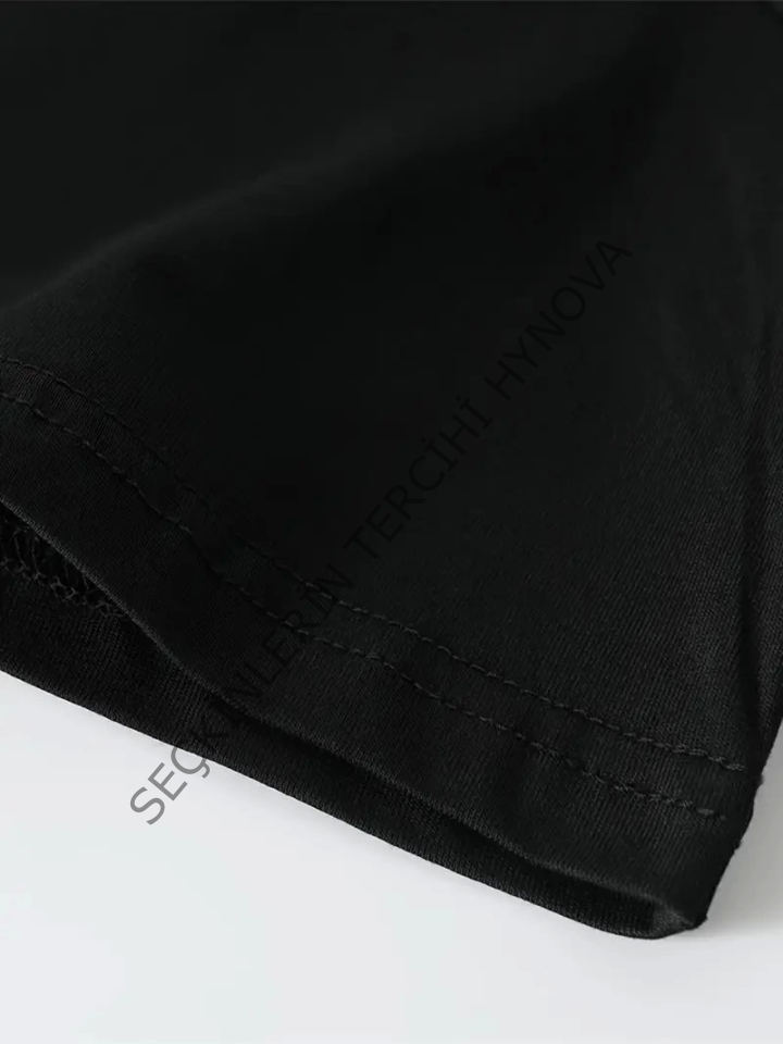 Baskılı Oversize Bisiklet Yaka T-shirt - Siyah