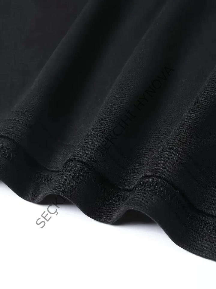Baskılı Oversize Bisiklet Yaka T-shirt - Siyah