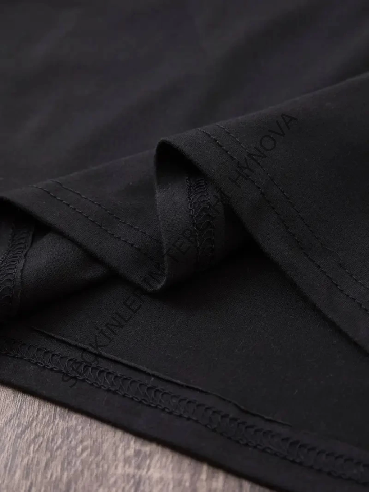 Baskılı Oversize Bisiklet Yaka T-shirt - Siyah