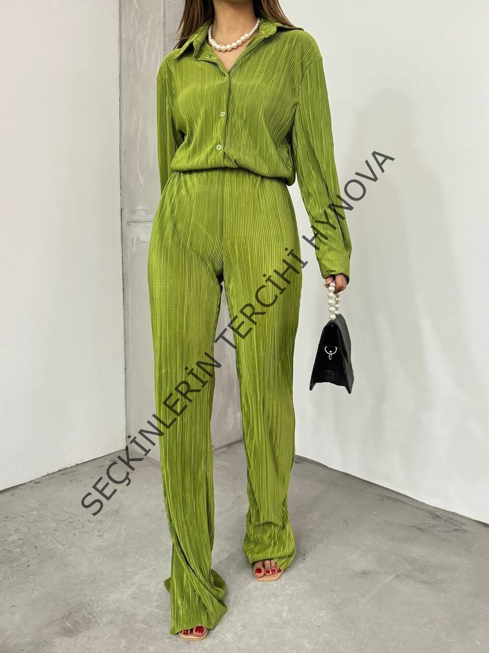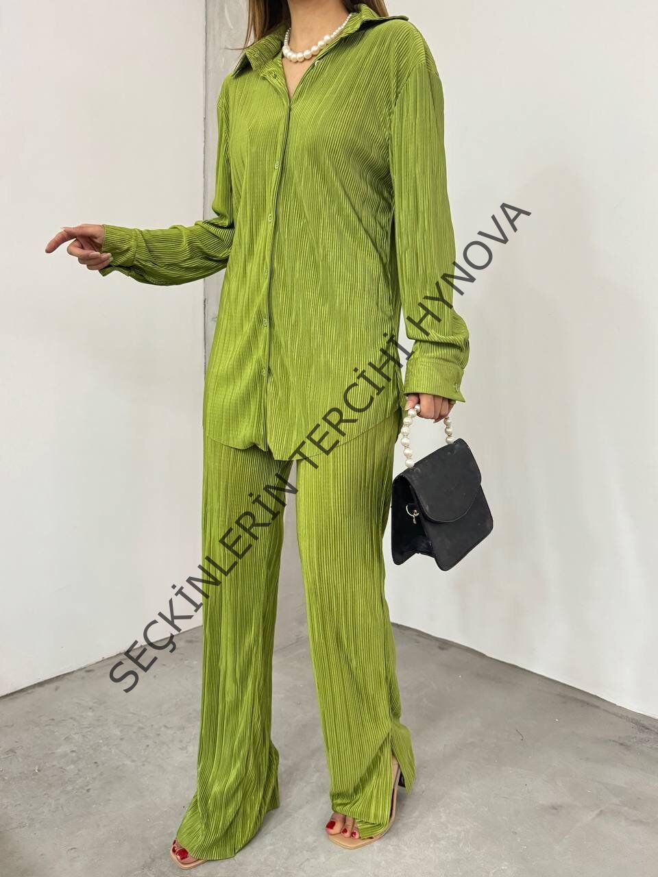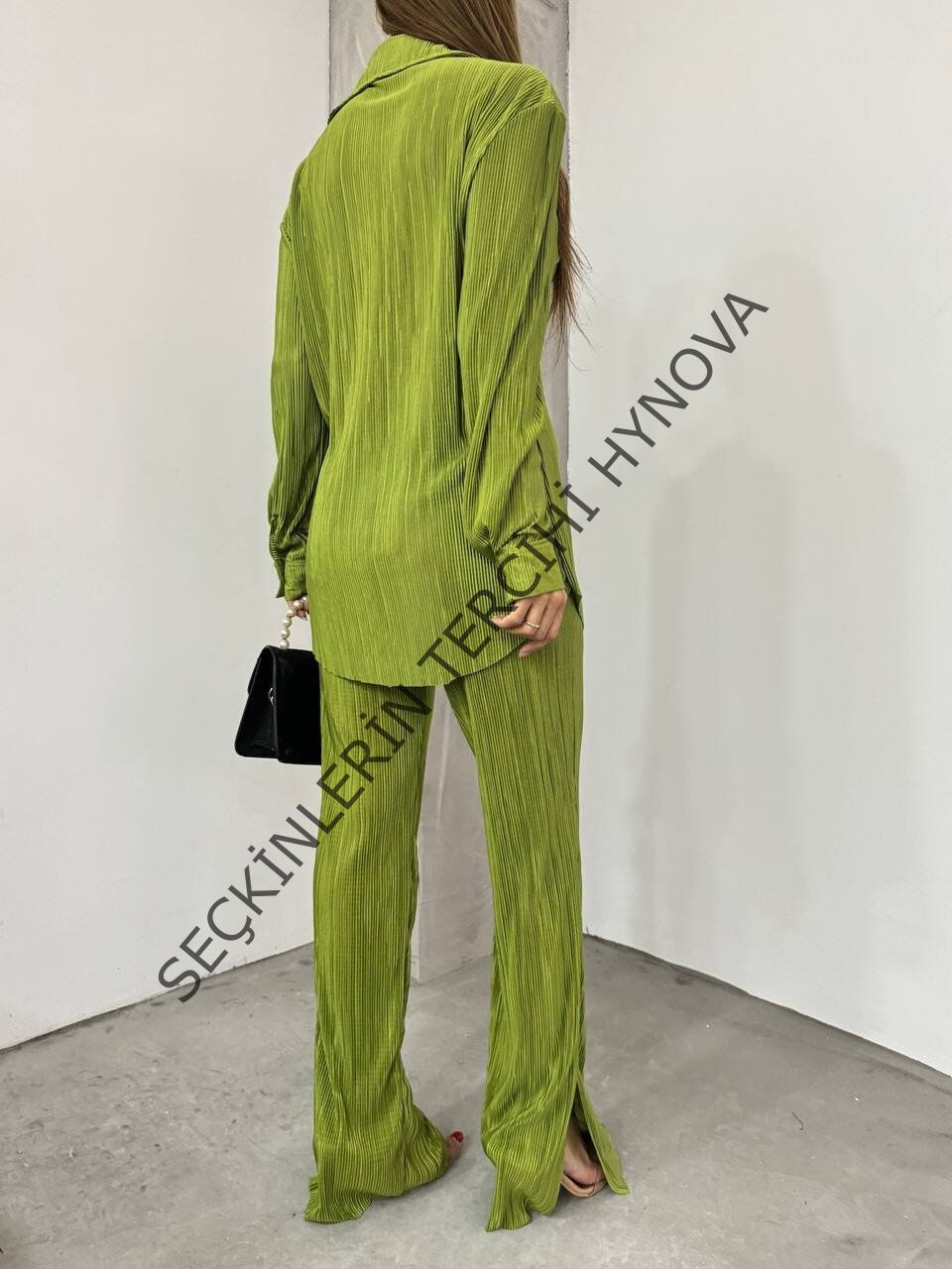 Bayrama Özel Kadın Düşük Omuz Salaş Gömlek Ve Yırtmaç Detay İspanyol Paça Pantolon