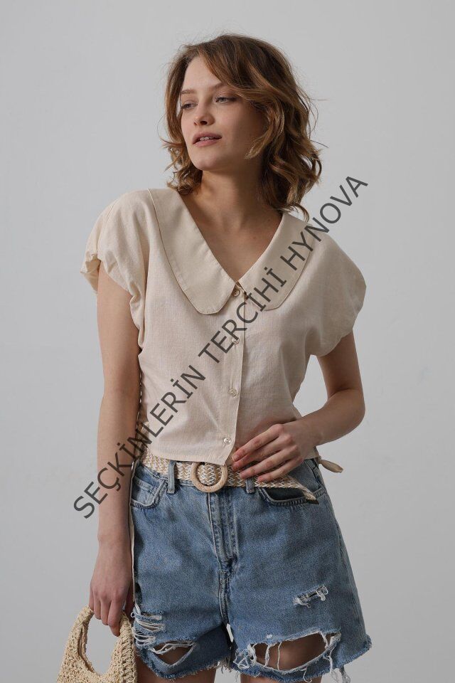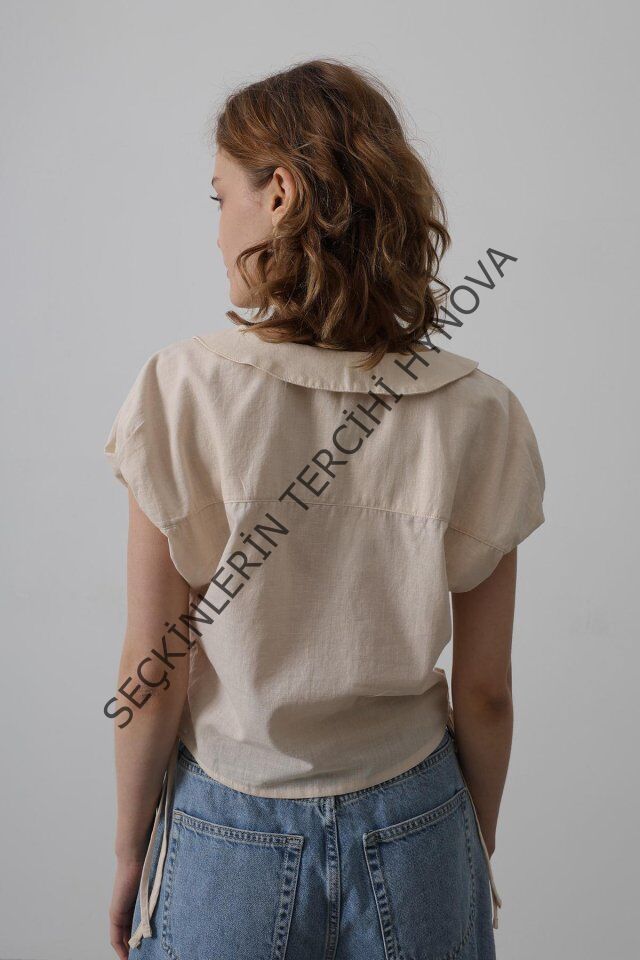 Bebe Yaka Yanları Bağlamalı Bluz - Taş
