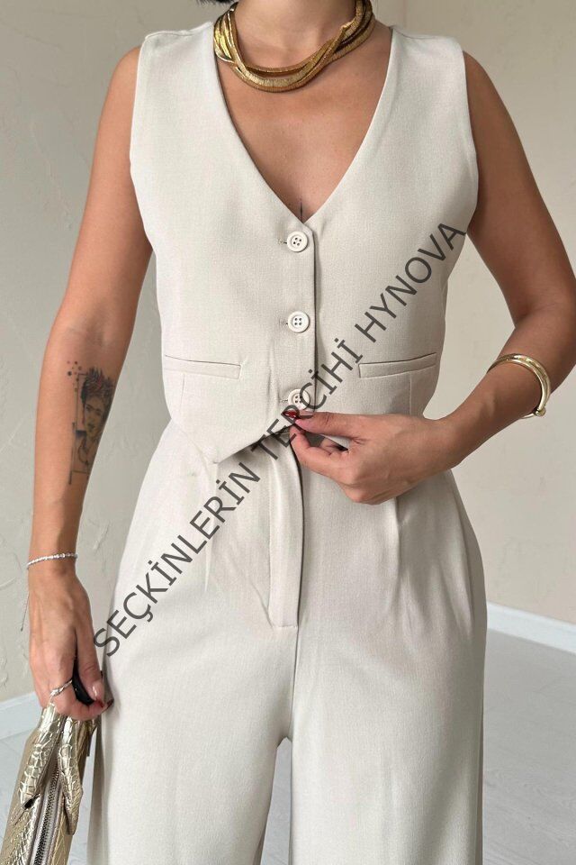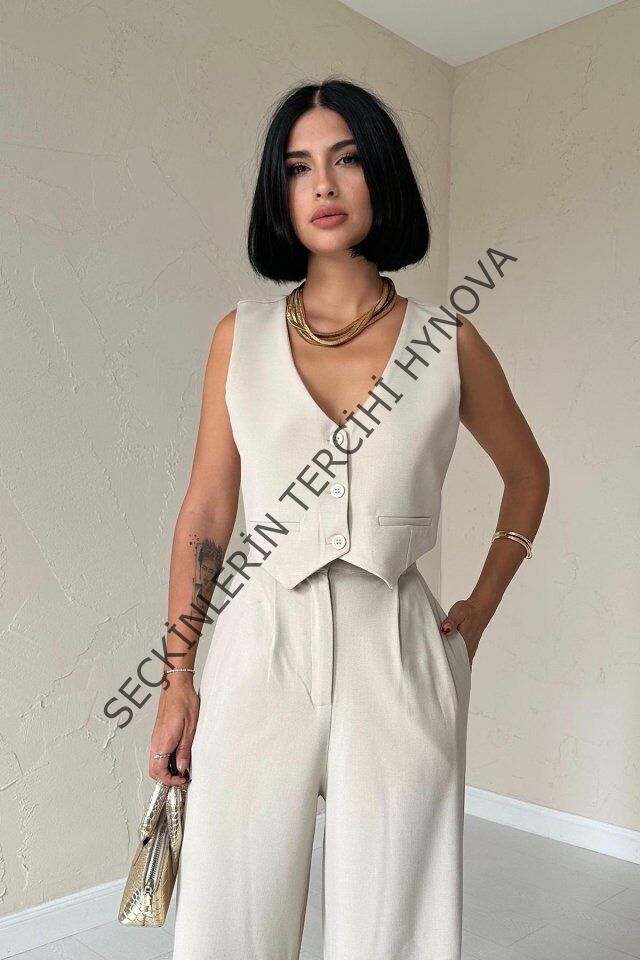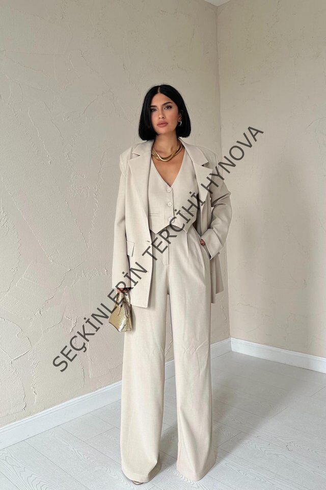 Bej Klas Ceket Ve Yelek Ve Pantolon Takım