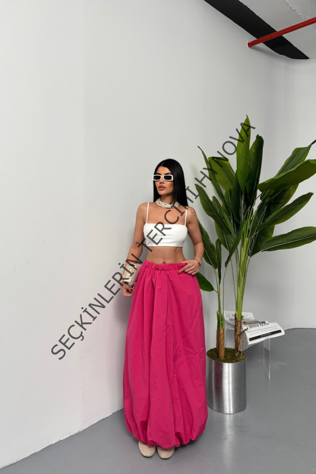 BEL LASTİKLİ BALON ETEK ŞANEL BOY SOFT KUMAŞ - Fuşya