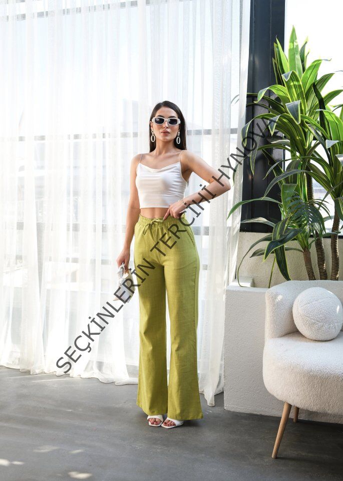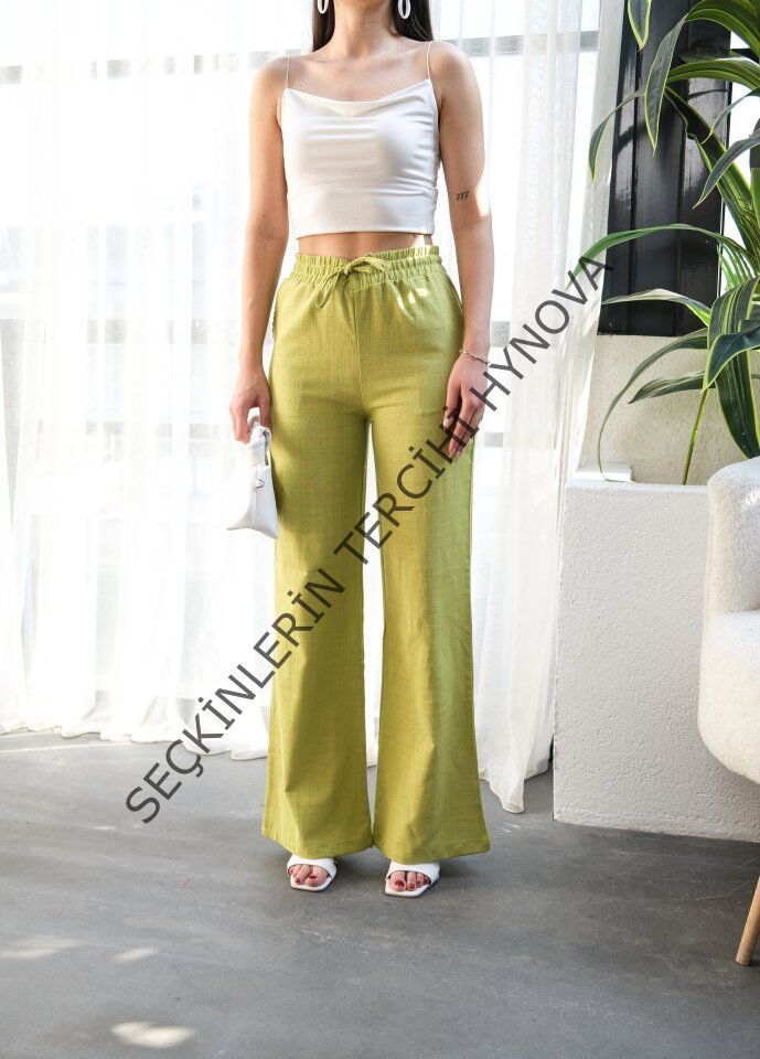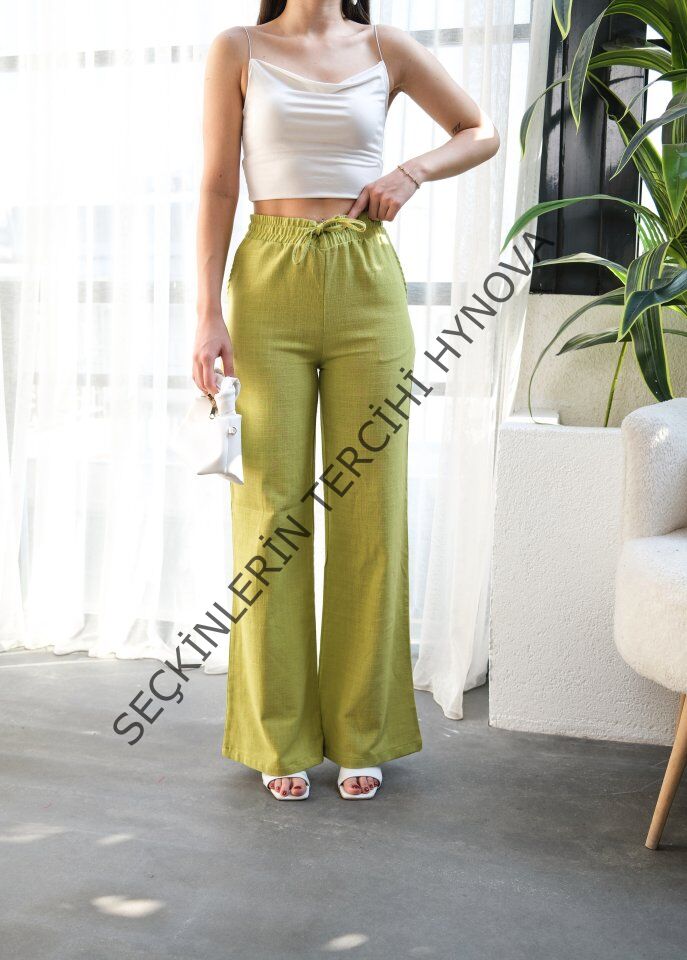Beli̇ Lasti̇kli̇ Ve Bağcikli Keten Pantolon