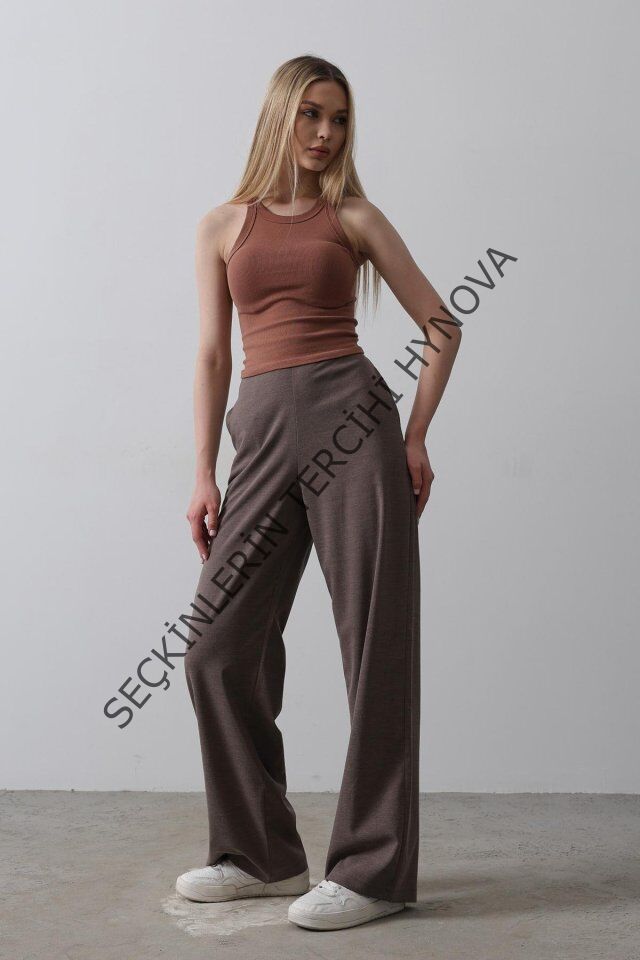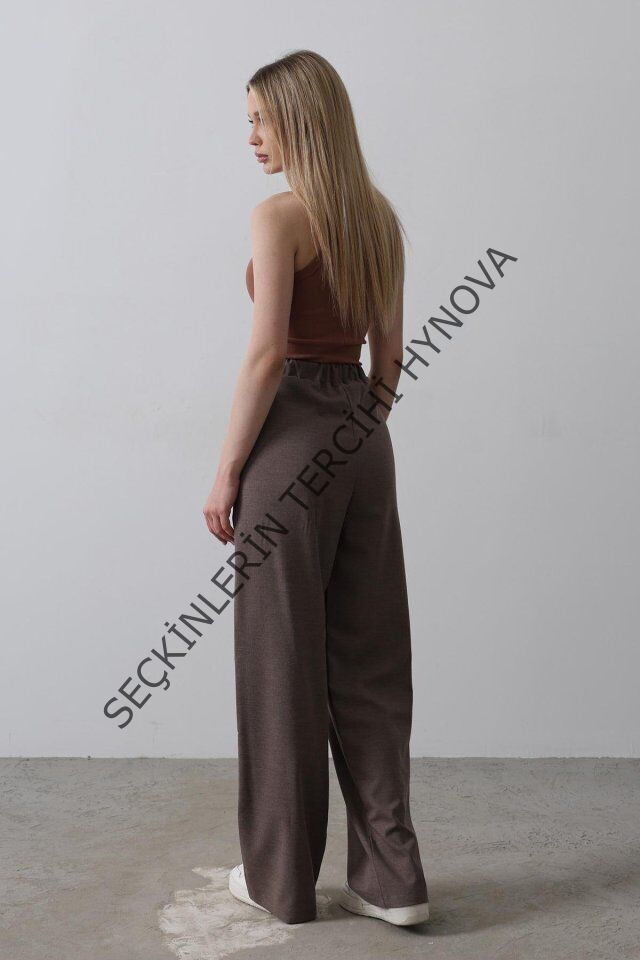 Beli Yarım Lastikli Palazzo Pantolon - Kahve
