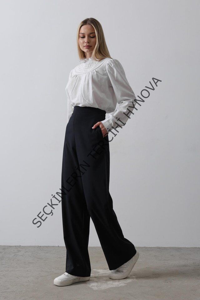Beli Yarım Lastikli Palazzo Pantolon - Lacivert