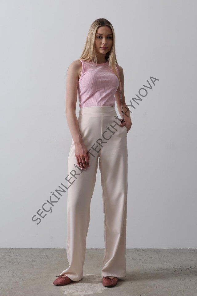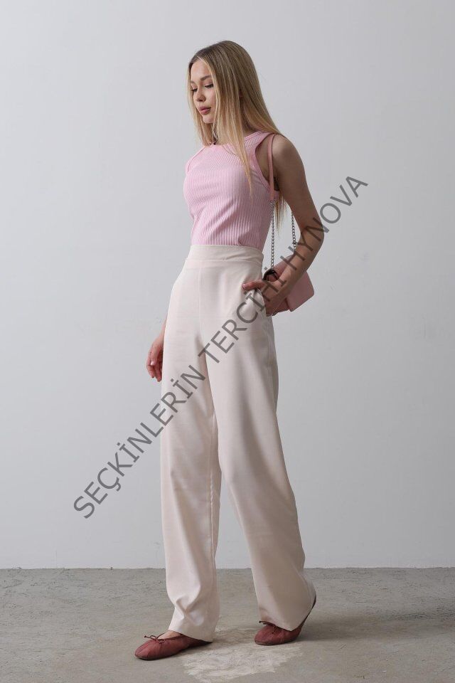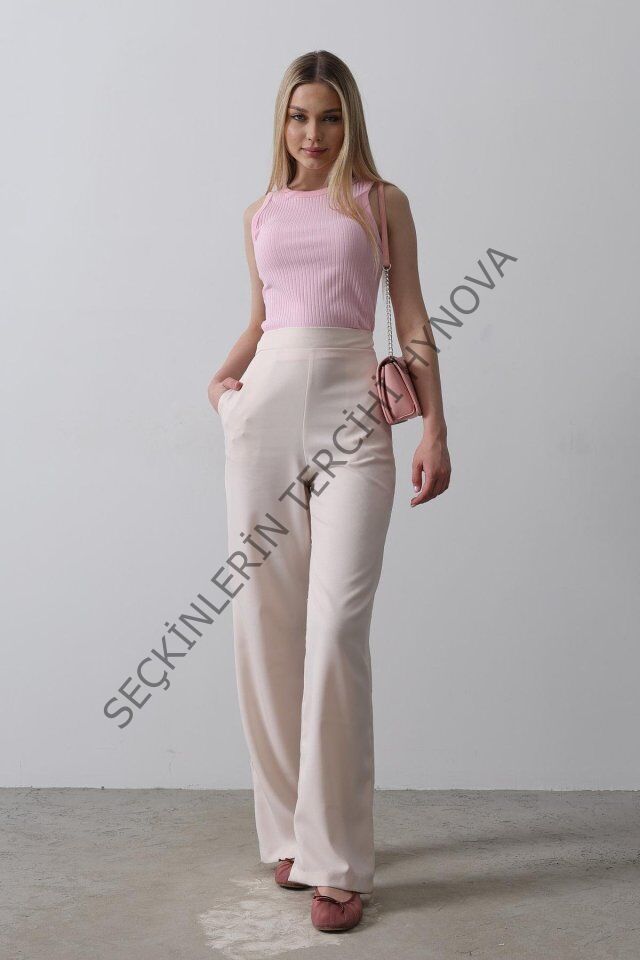 Beli Yarım Lastikli Palazzo Pantolon - Pudra