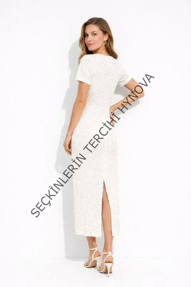 Beyaz Kısa Kollu Arkası Yırtmaçlı Uzun Elbise + İç Göstermeyen Askılı Mini Elbiseli - Beyaz