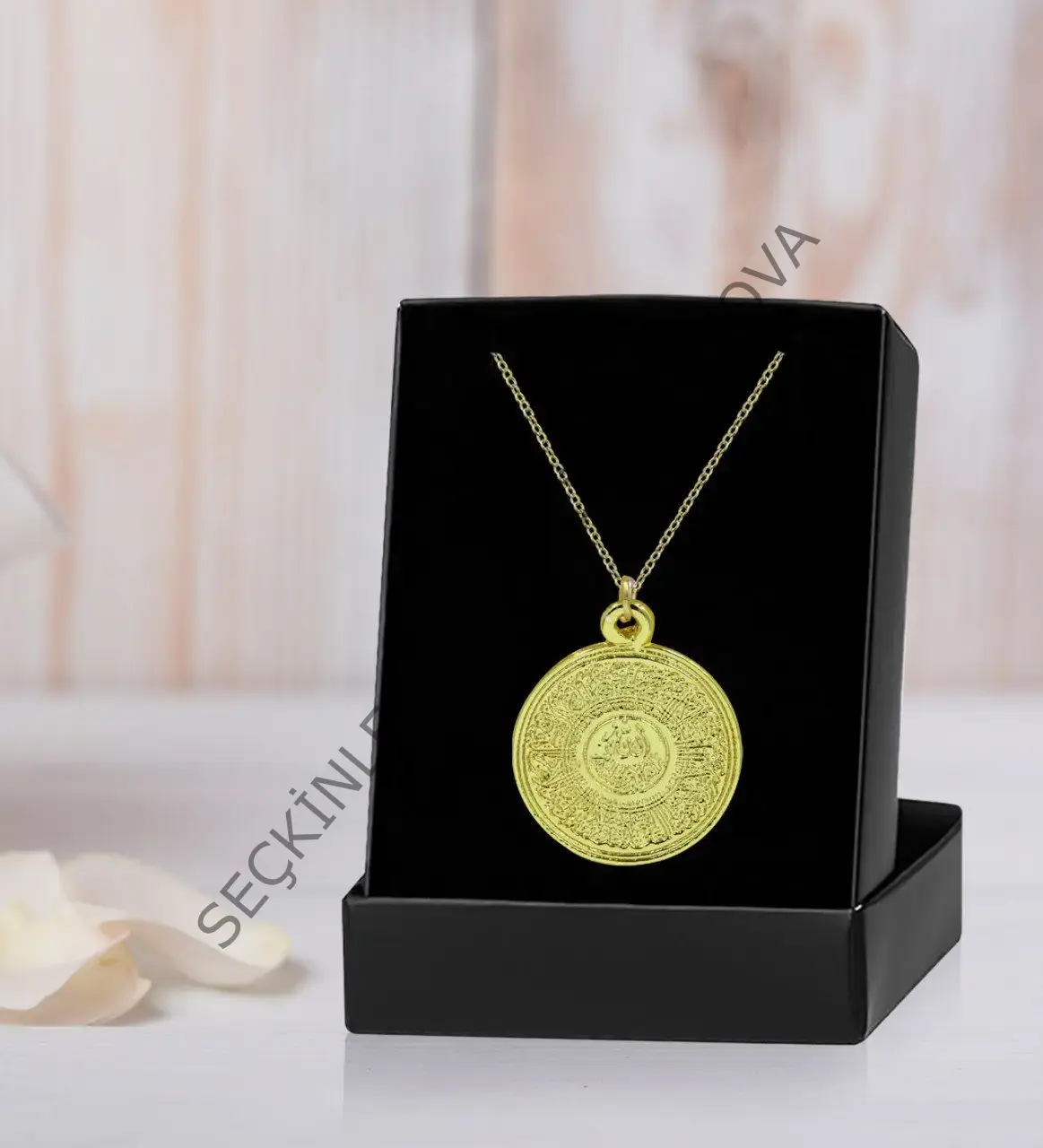 BK Gift Kadınlara Özel Siyah Şal ve Kabartmalı Gold Ayetel Kürsi Kolye