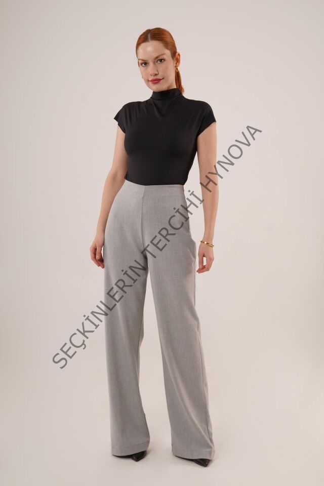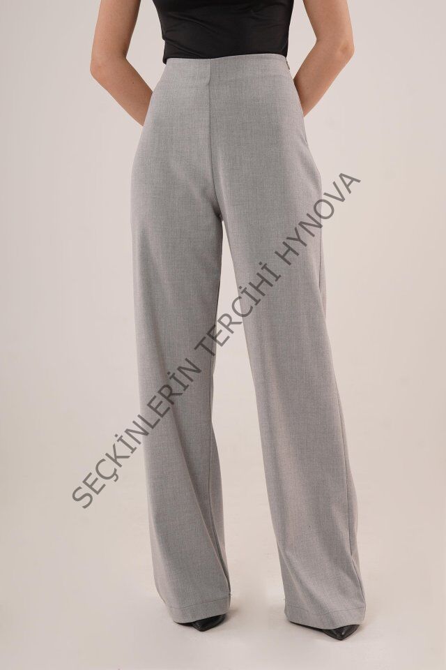 Bol Paça Yandan Fermuarlı Gri Kumaş Pantolon