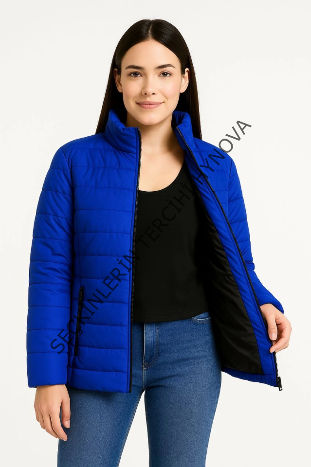 Bomber Mont Ceket – Su İtici Kumaş, Kapitone Astarlı, Fermuarlı, Kışlık - Saks Mavisi