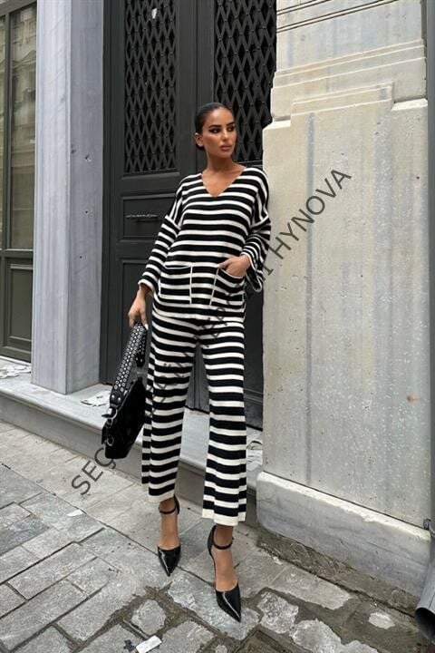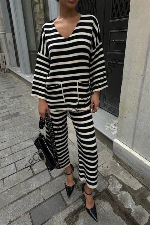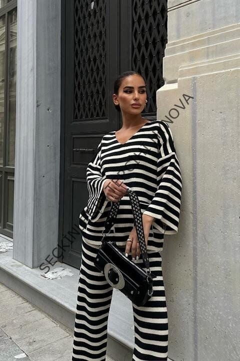 Candy Çizgili Straight Fit Pantolon Takım 9705-015