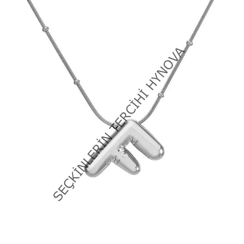 Çelik Balon Harf Kolye (F) 45cm Silver Renk // KOLYE-1714