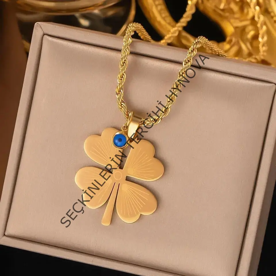 Çelik Nazar Boncuklu Yonca Kolye 60 cm