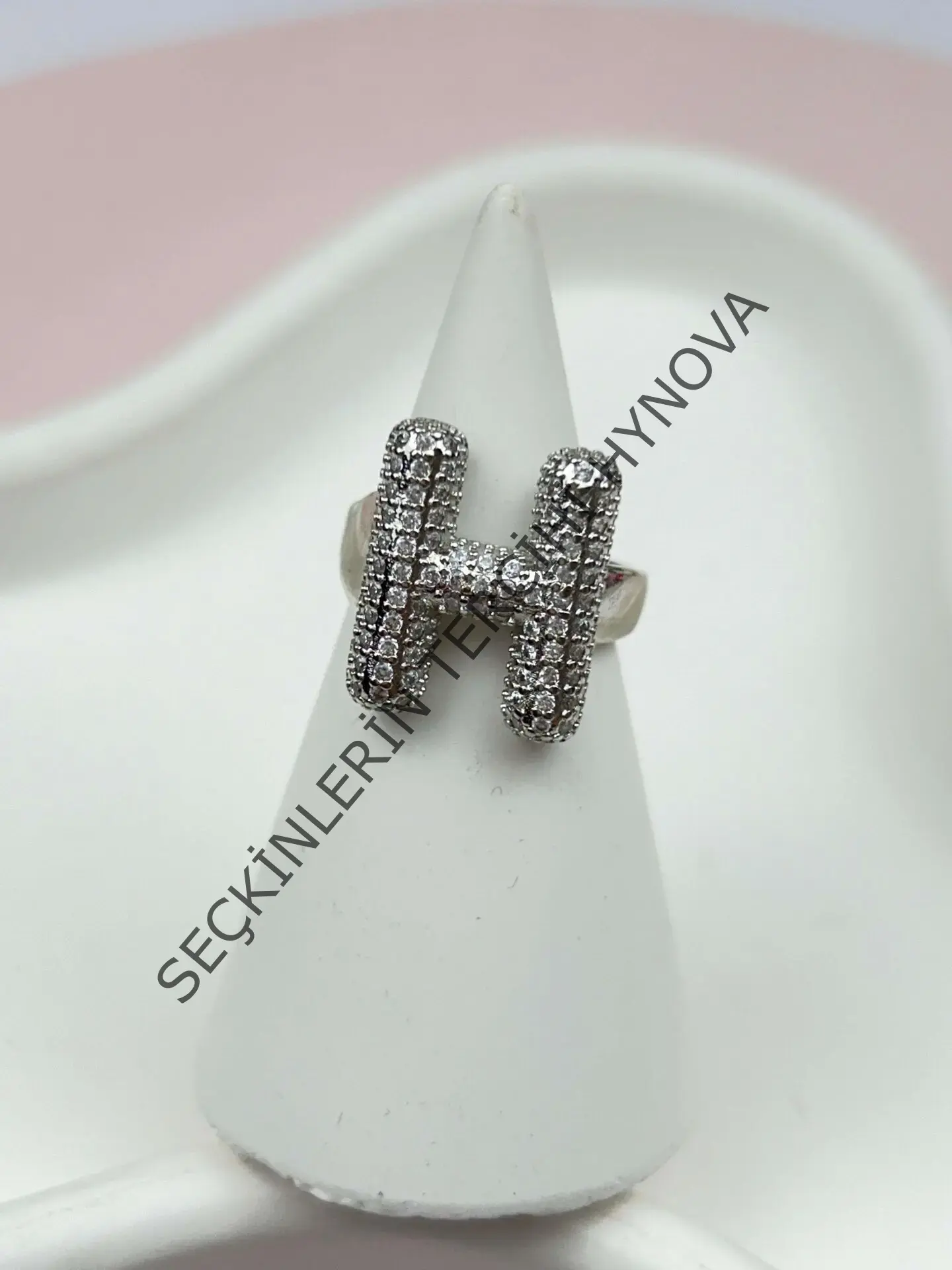 Çelik Taşlı Balon Harf Yüzük (Ayarlanabilir) // YÜZÜK-874