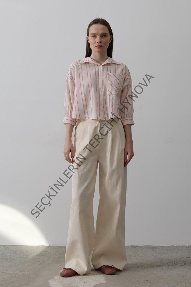 Çift Pileli Palazzo Pantolon - Natür