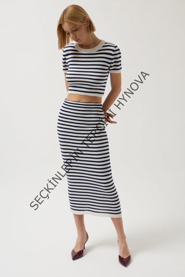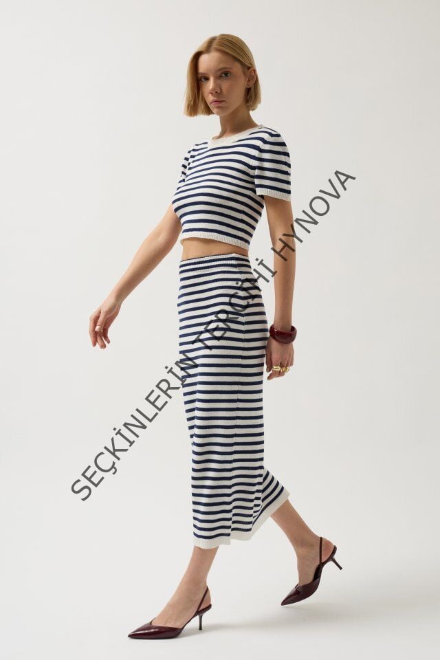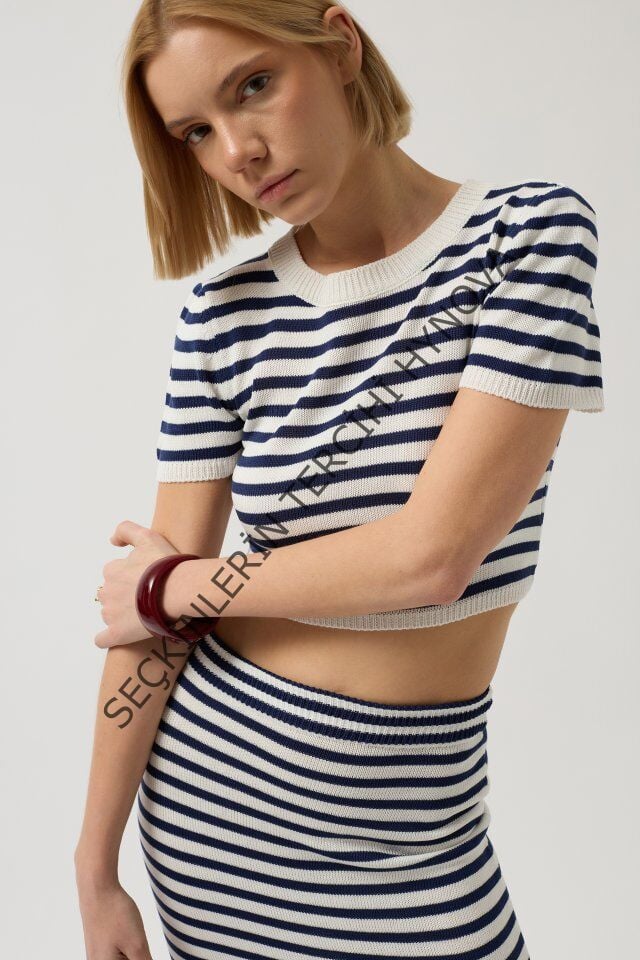 Çizgili Bisiklet Yaka Crop