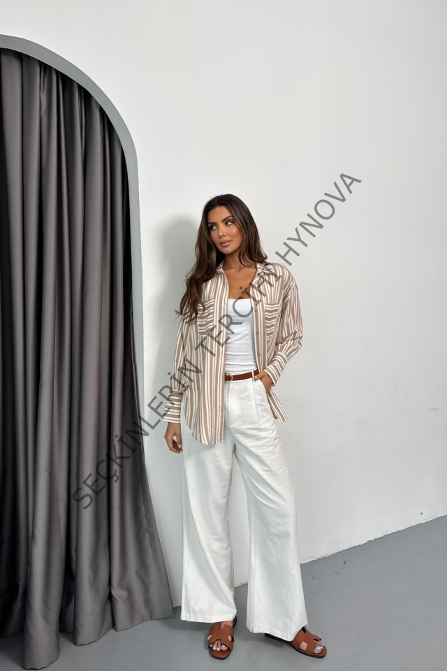 ÇİZGİLİ GÖMLEK - Bej