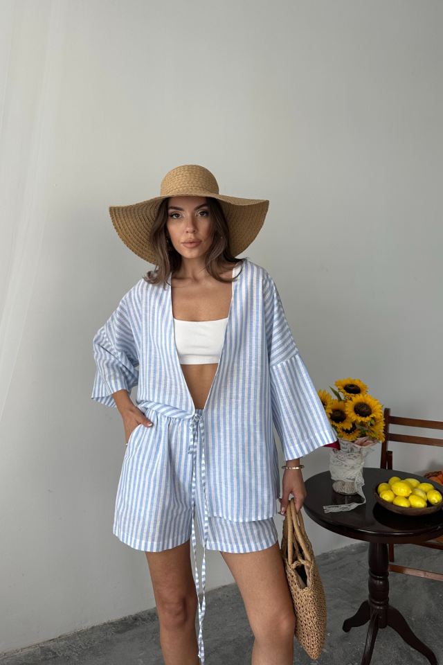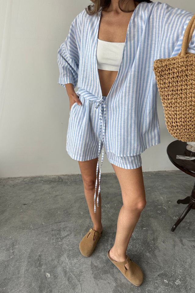 ÇİZGİLİ TUNİK -ŞORT TAKIM - Mavi
