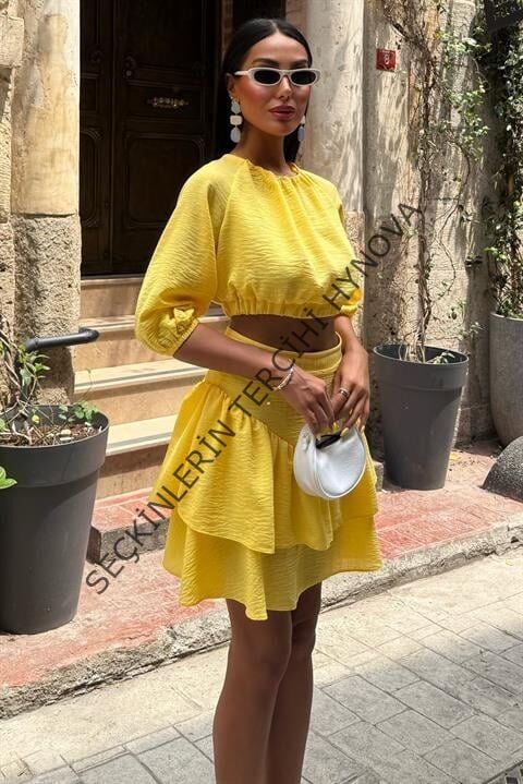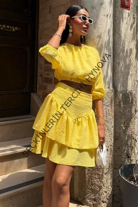 Crop Bluz Ve Kat Kat Etekli Takım 10207