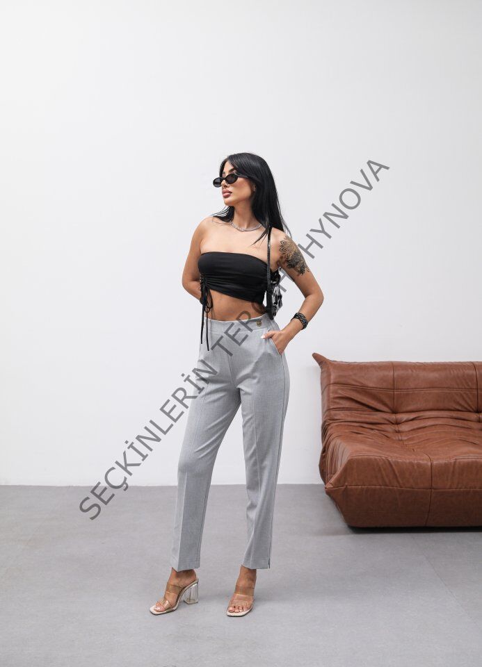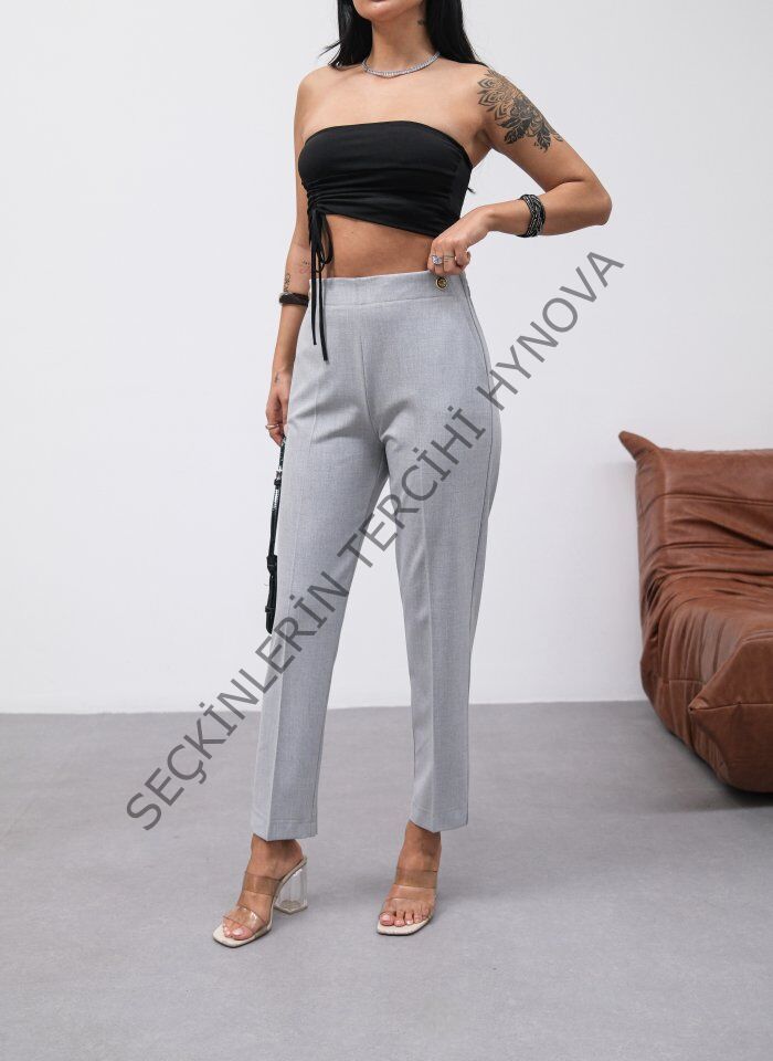Dekorati̇f Düğmeli̇ Arka Bel Lasti̇kli̇ Pantolon