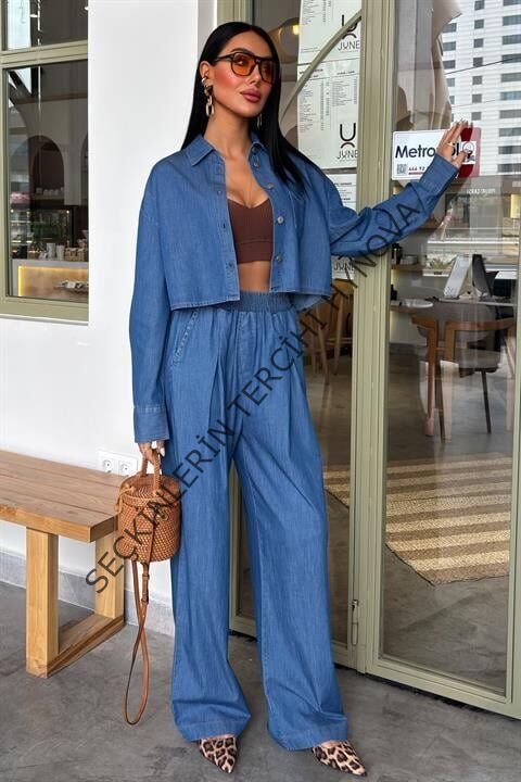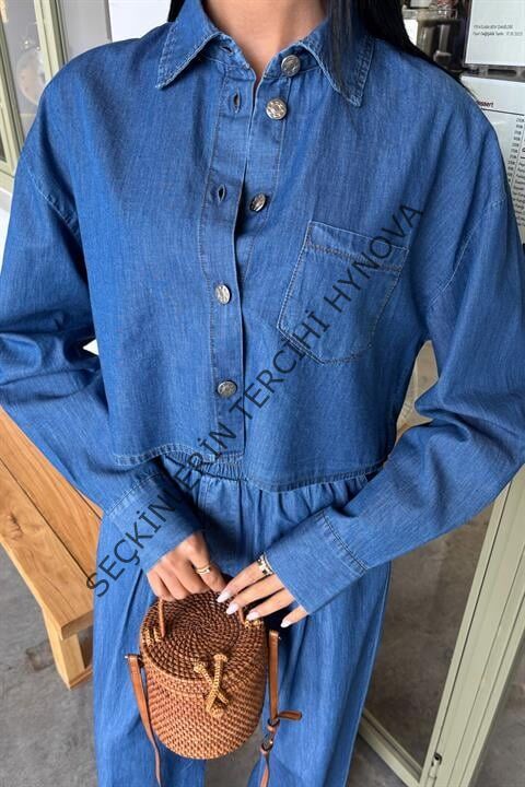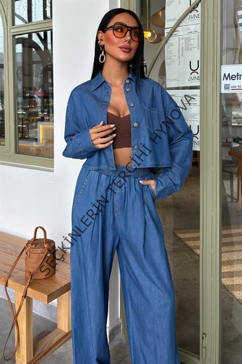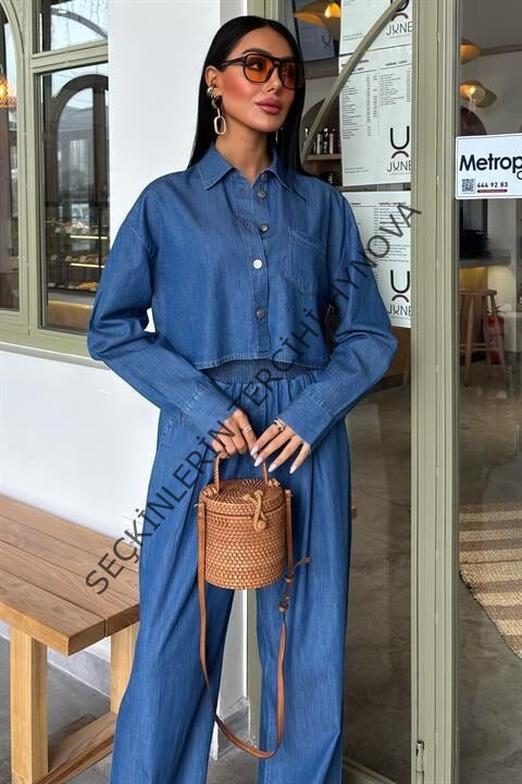 Denim Gömlek Plazzo Pantolon Takım 10163-08