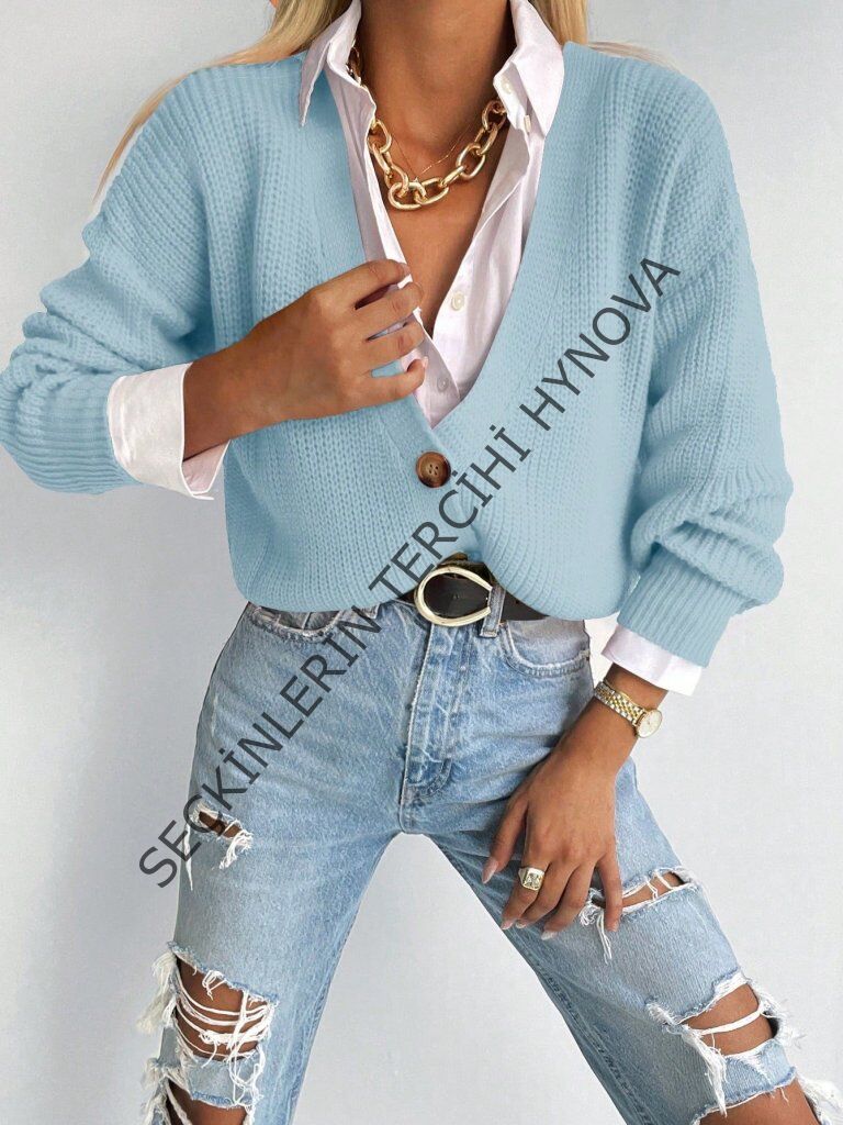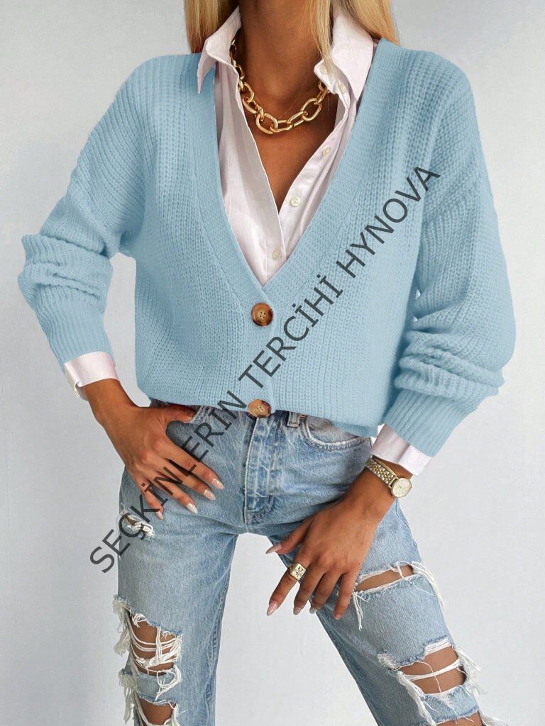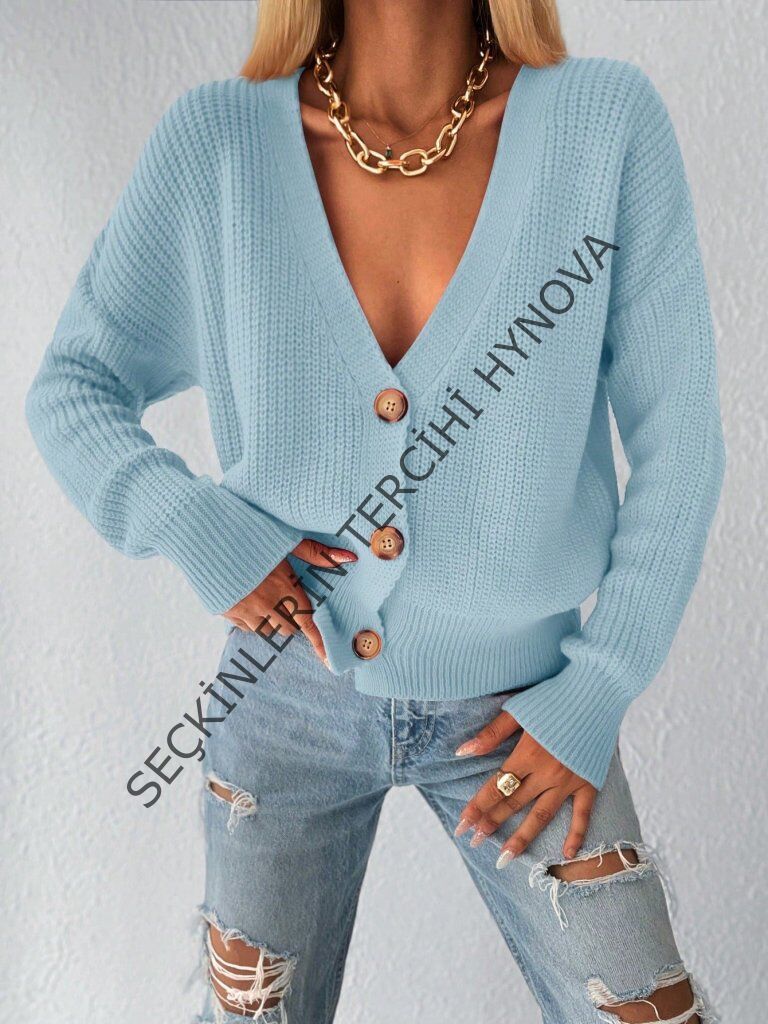 Düğme Detay Triko Bluz