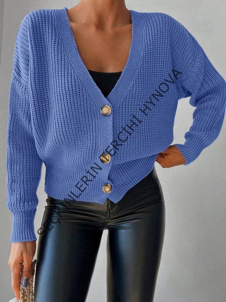 Düğme Detay Triko Bluz