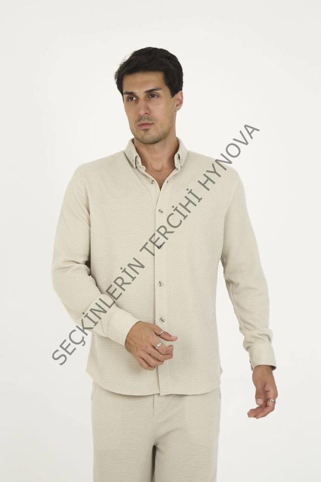 Düğmeli Tam Kalıp Uzun Kol Jakar Gömlek - Gri